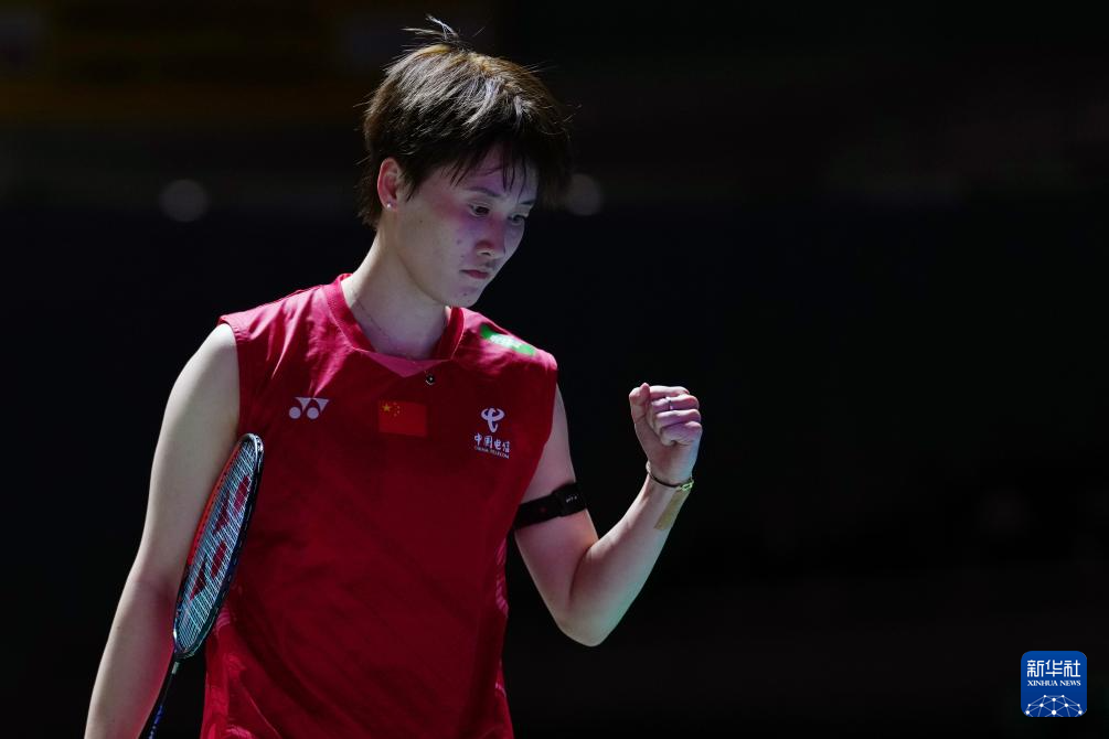7月17日,陈雨菲在比赛中庆祝得分。新华社记者 贾浩成 摄