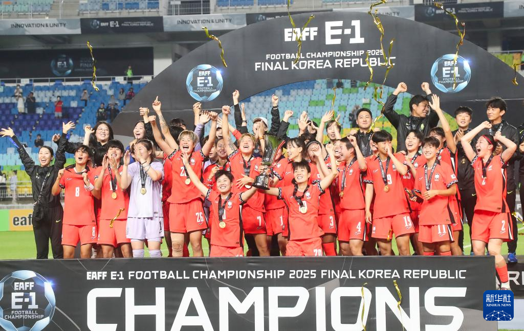 当日,在韩国水原举行的2025年东亚足联E-1足球锦标赛(东亚杯)女足第三轮比赛中,韩国队2比0战胜中国台北队,获得冠军。