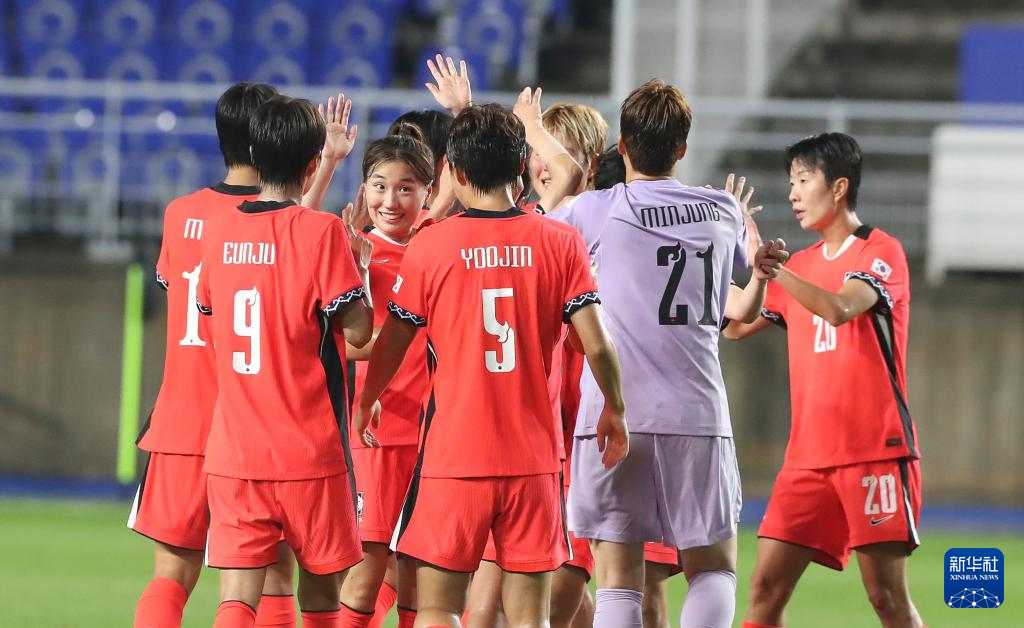 7月16日,韩国队球员庆祝进球。新华社记者 姚琪琳 摄