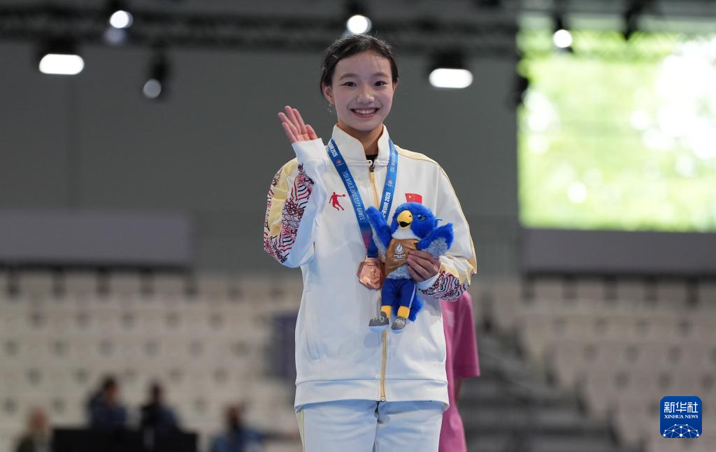 7月17日,并列季军、中国选手潘美静在颁奖仪式上。新华社记者 王曦 摄