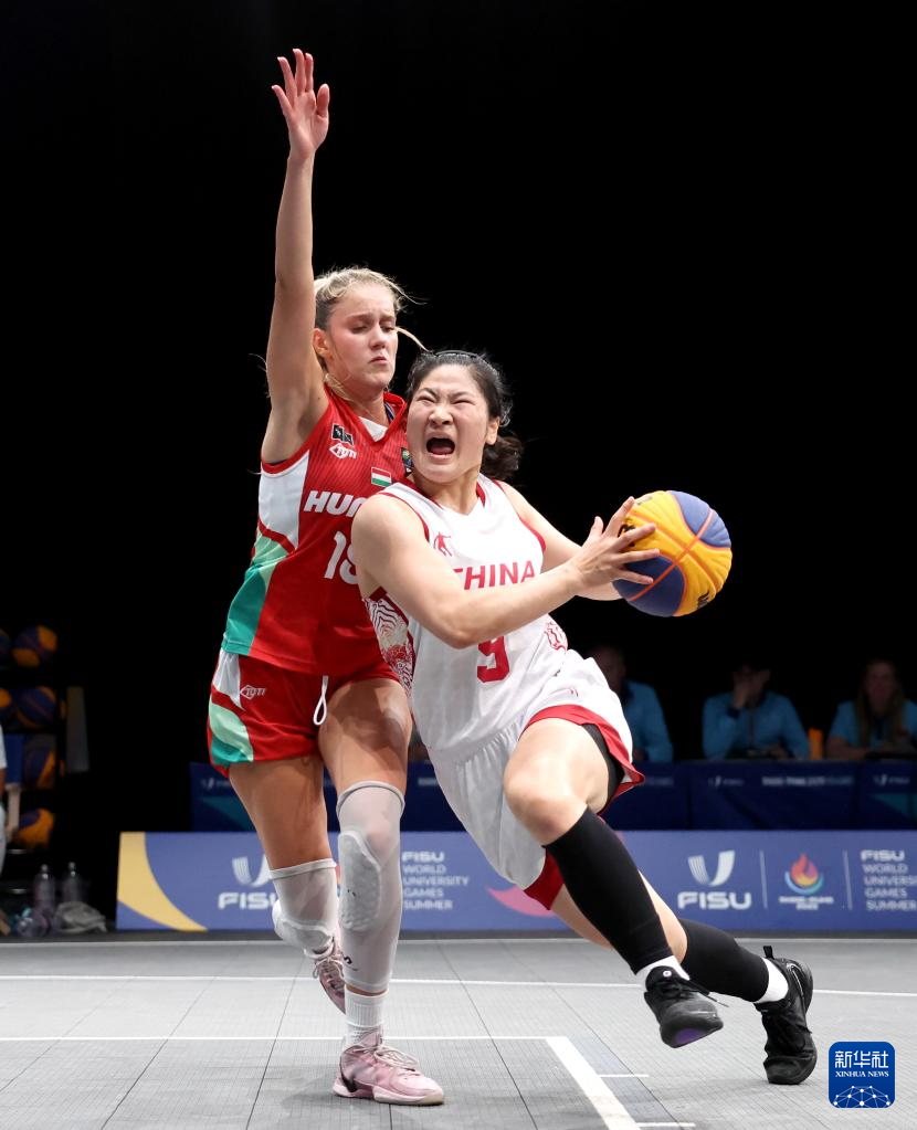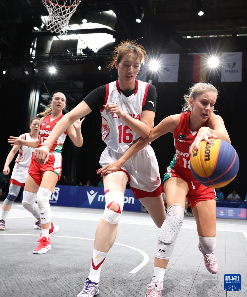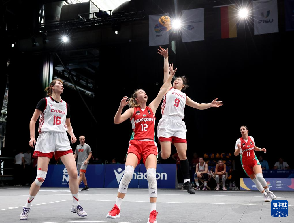 当日,在德国波鸿进行的2025年莱茵-鲁尔世界大学生夏季运动会女子三人篮球小组赛中,中国队21比14战胜匈牙利队。