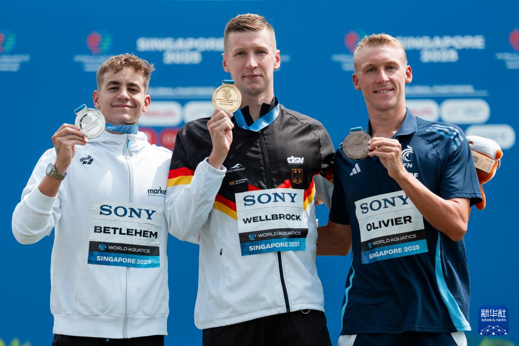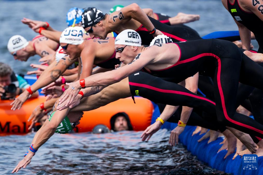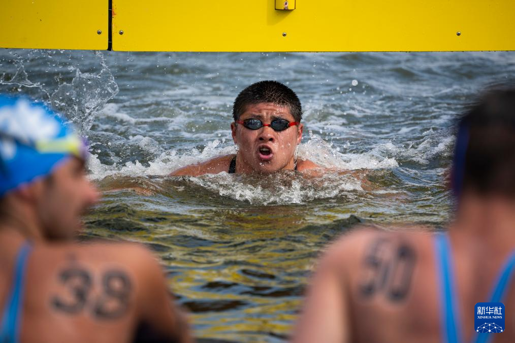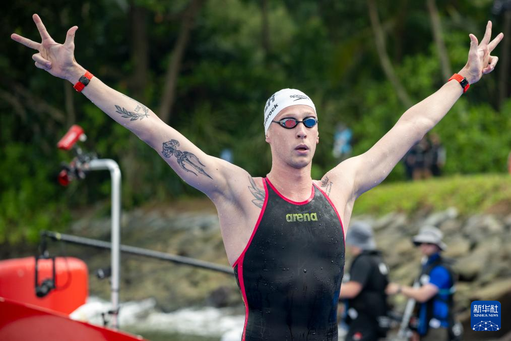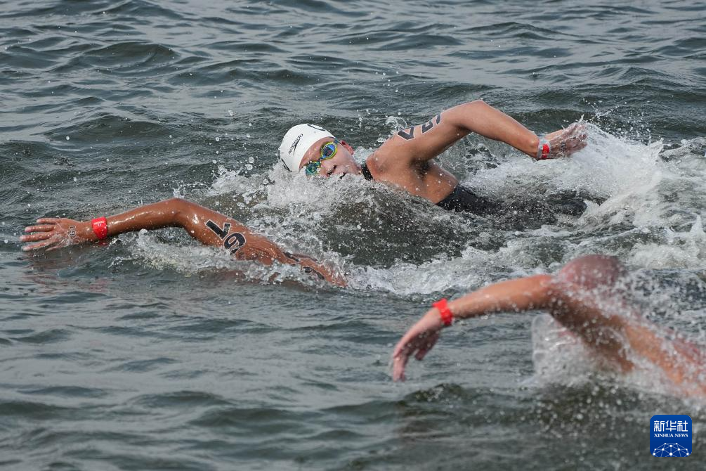 当日,2025年世界游泳锦标赛公开水域男子3公里冲刺赛在新加坡举行。
