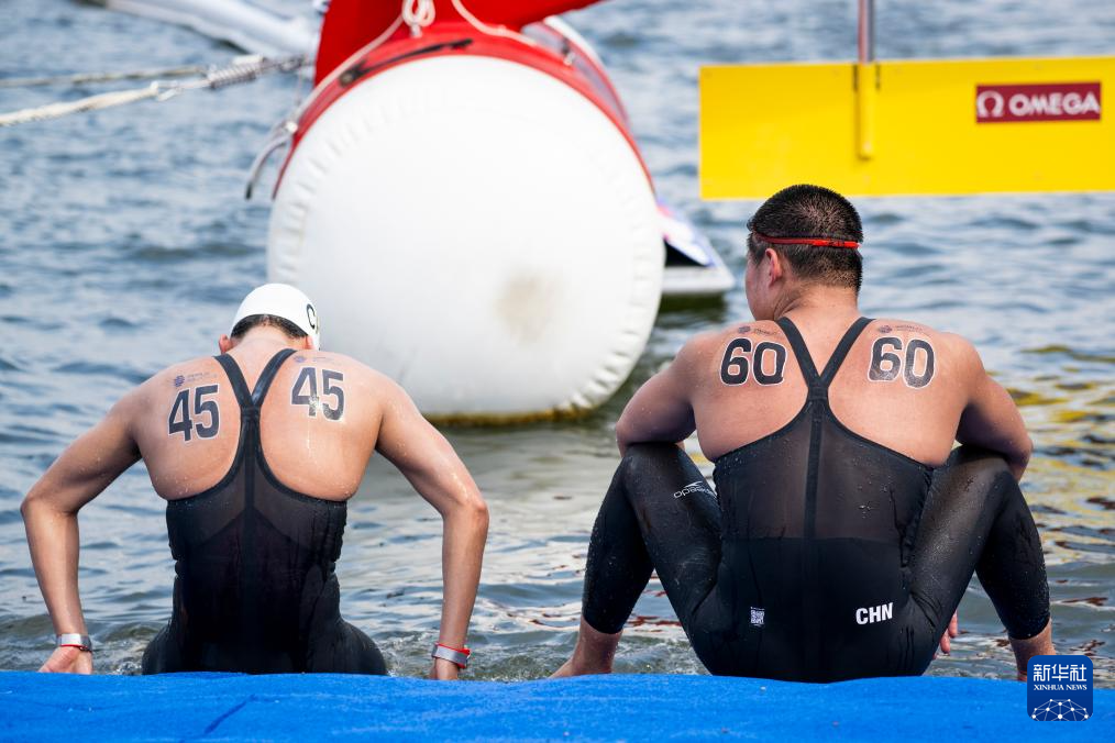 7月19日,中国队选手张锦厚(左)和中国队选手兰天辰在预赛后,他们均未能晋级半决赛。新华社记者 伍志尊 摄