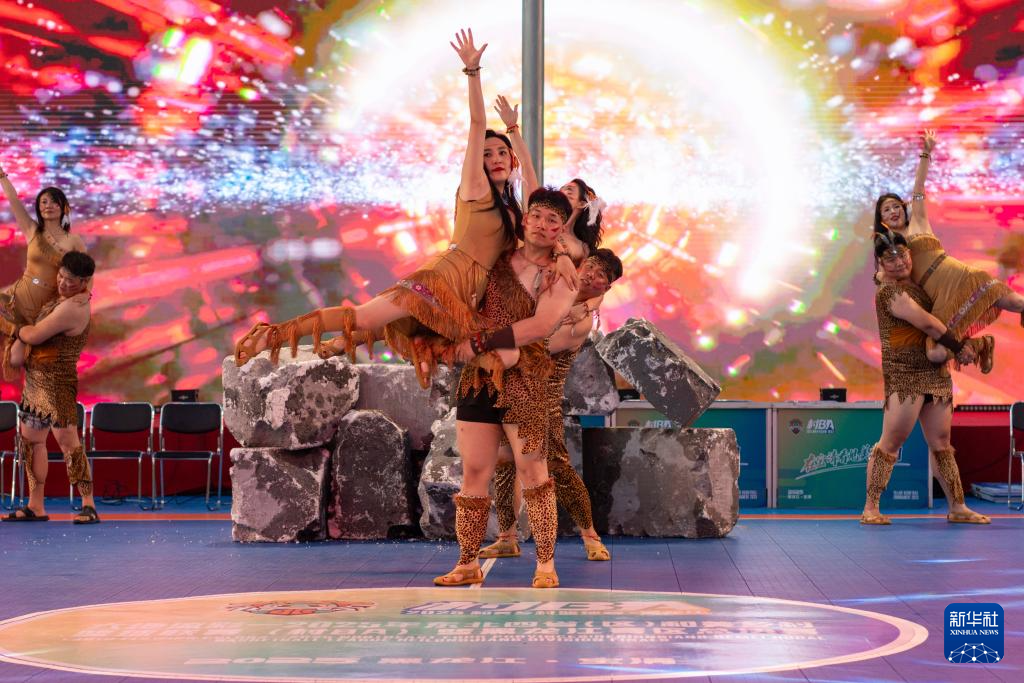 7月19日,大庆丰绅队和觅食大队球员在开幕式的表演赛中。