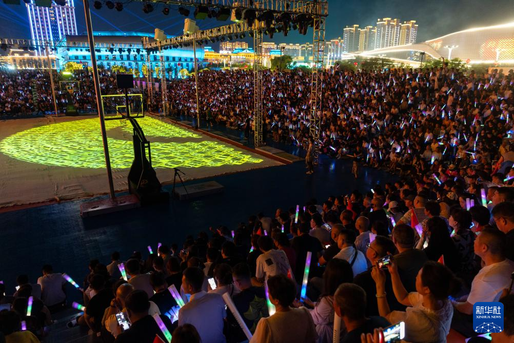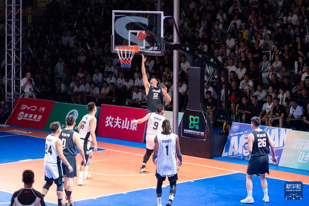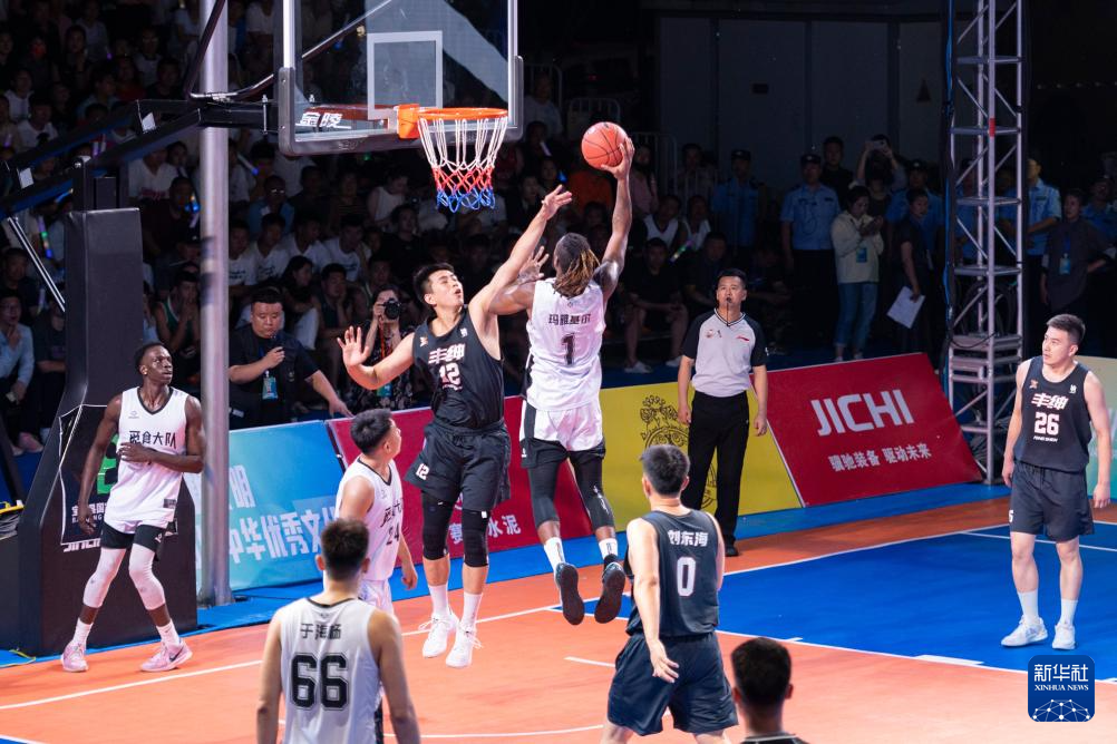 7月19日,大庆丰绅队球员在开幕式的表演赛中上篮。