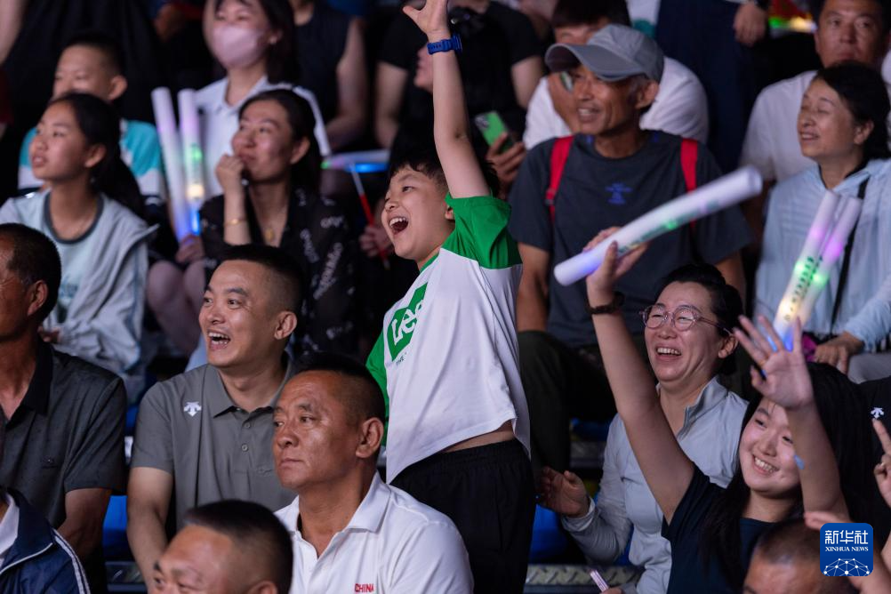 7月19日,观众观看比赛开幕式上的灯光秀。