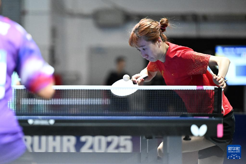 当日,在德国埃森举行的2025年莱茵-鲁尔世界大学生夏季运动会乒乓球女子四分之一决赛中,中国队3比0战胜泰国队,晋级半决赛。