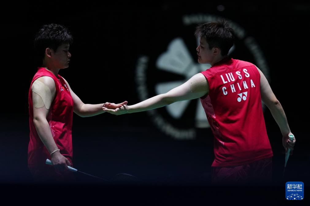 7月20日,刘圣书/谭宁(左)在比赛中交流。