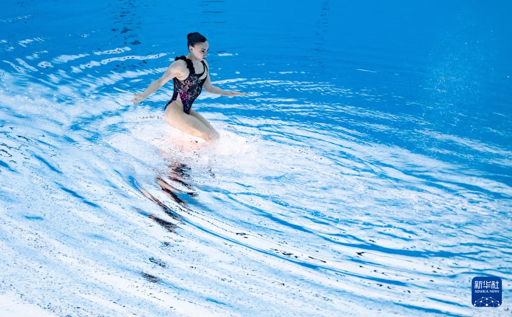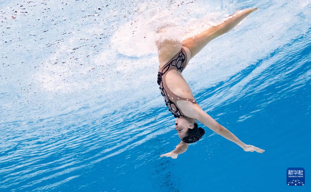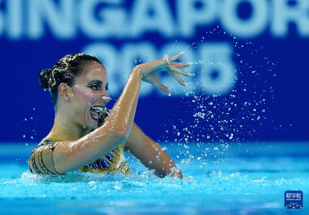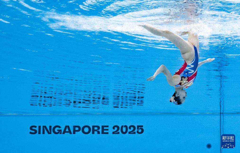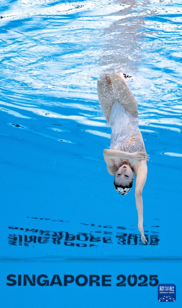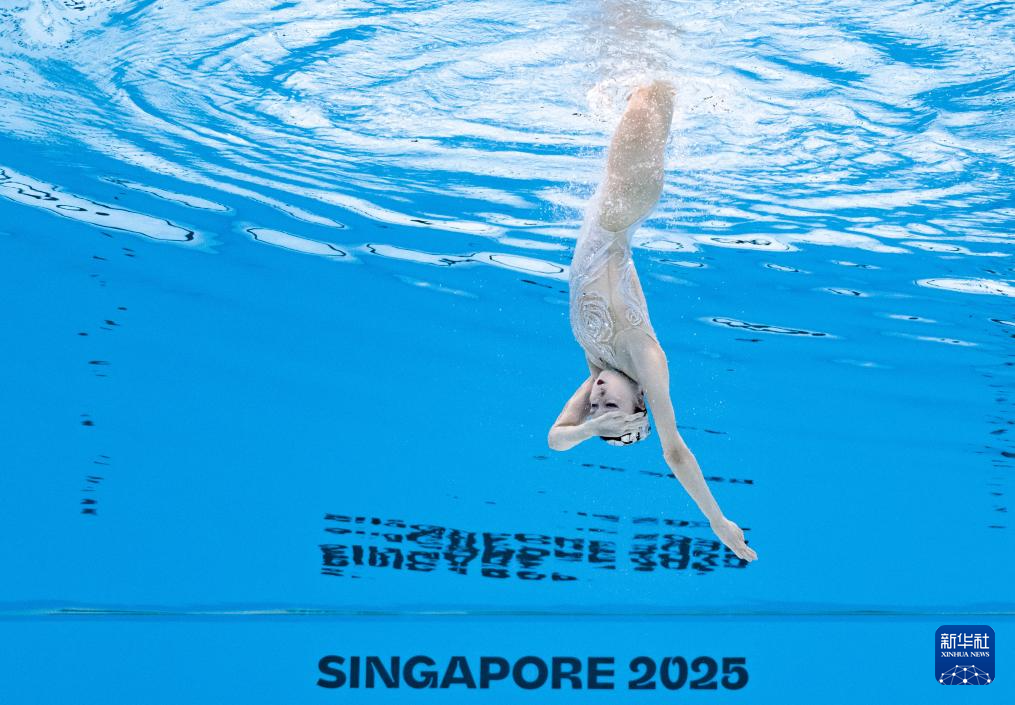 当日,2025年世界游泳锦标赛花样游泳女子单人技术自选决赛在新加坡举行。