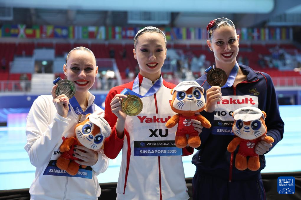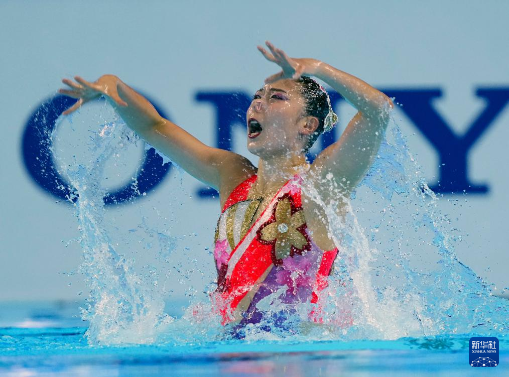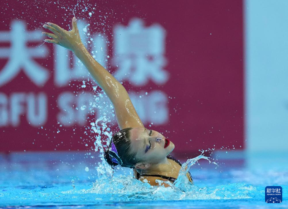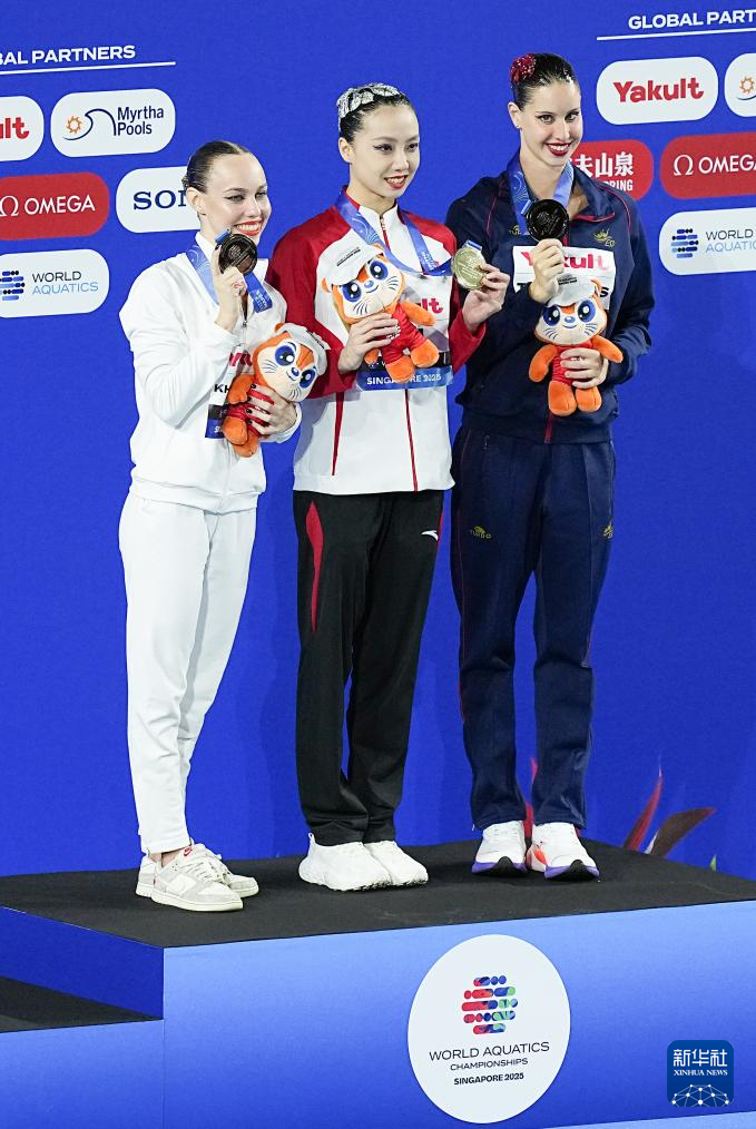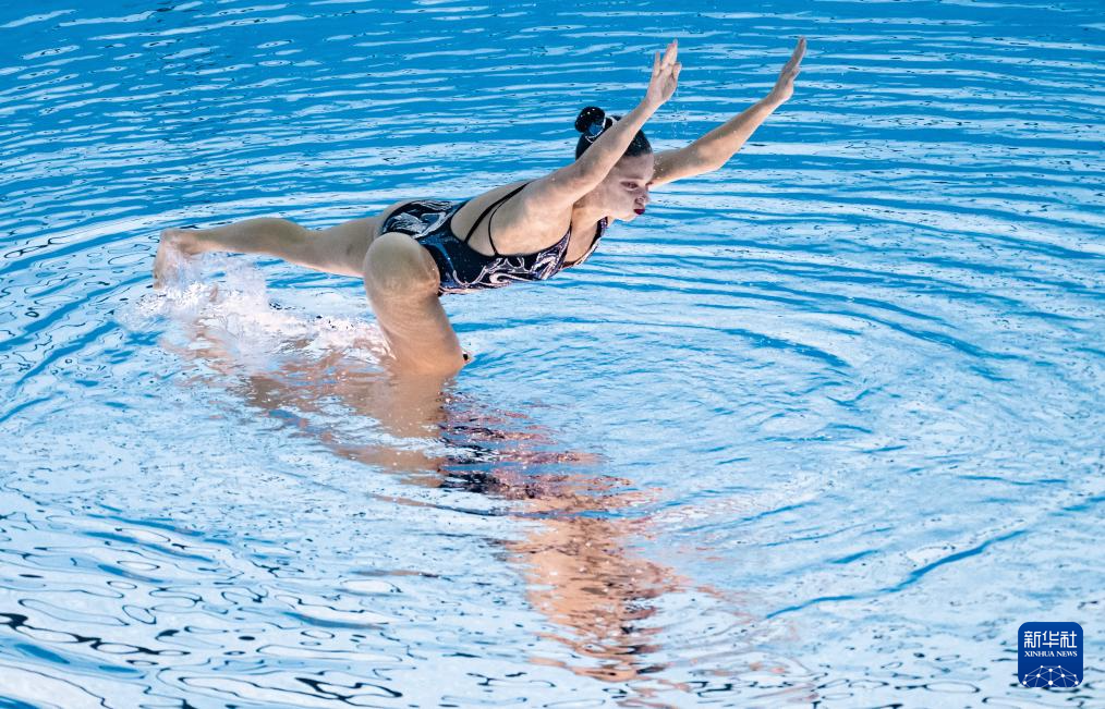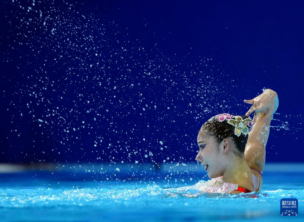 当日,2025年世界游泳锦标赛花样游泳女子单人技术自选决赛在新加坡举行。
