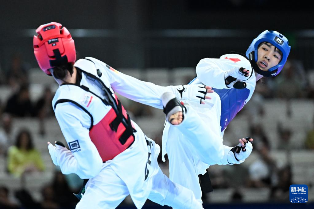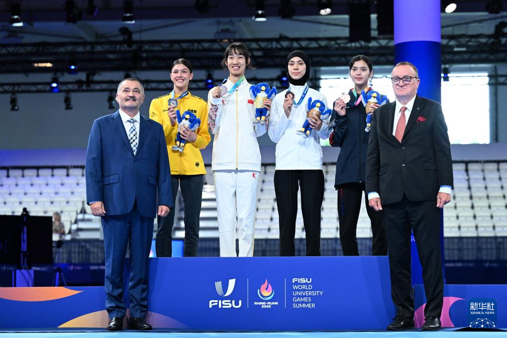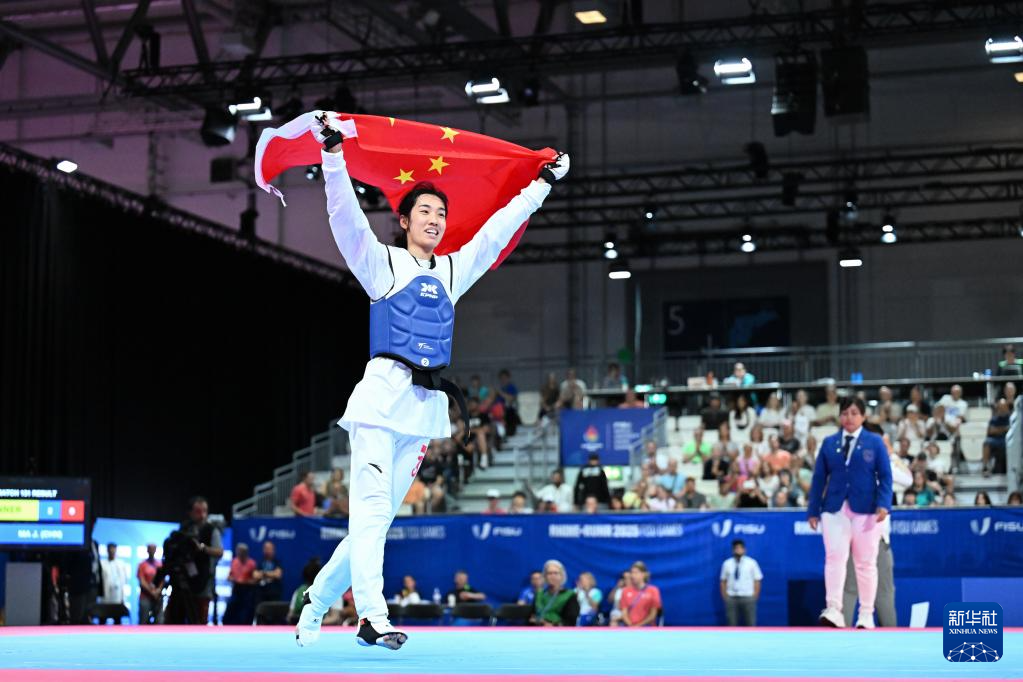 当日,在德国埃森举行的2025年莱茵-鲁尔世界大学生夏季运动会跆拳道女子49公斤级决赛中,中国选手马静月战胜德国队选手基斯卡尔特,获得金牌。