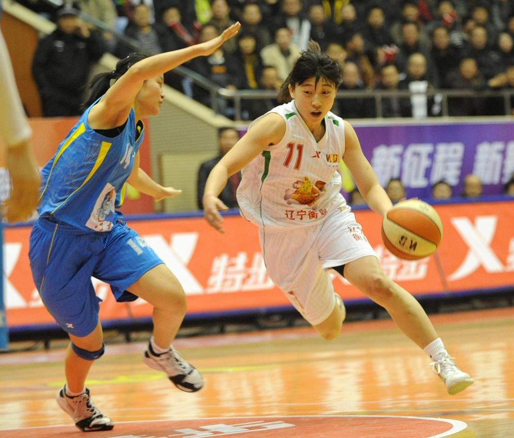 2010年3月11日,杨半伴(右)在比赛中进攻。新华社记者 李钢 摄