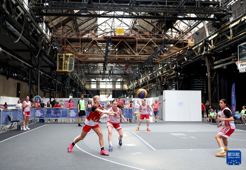 7月20日,在“波鸿世纪厅”内,当地青少年在大运会期间举办的体育节活动中打篮球。新华社记者 张晨 摄