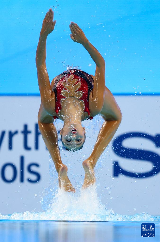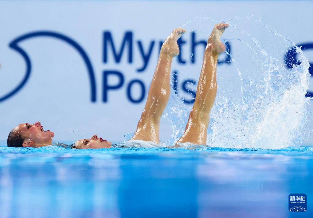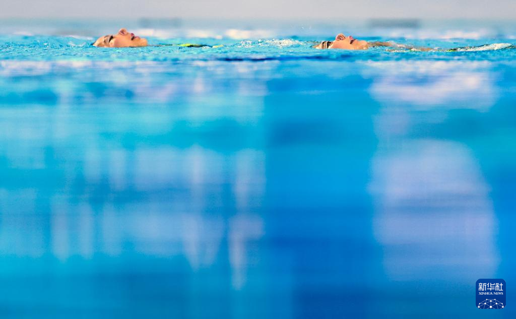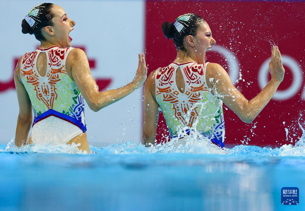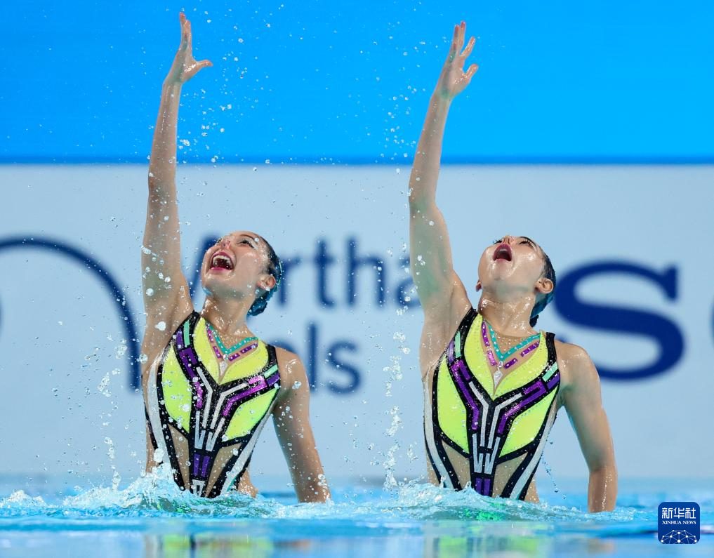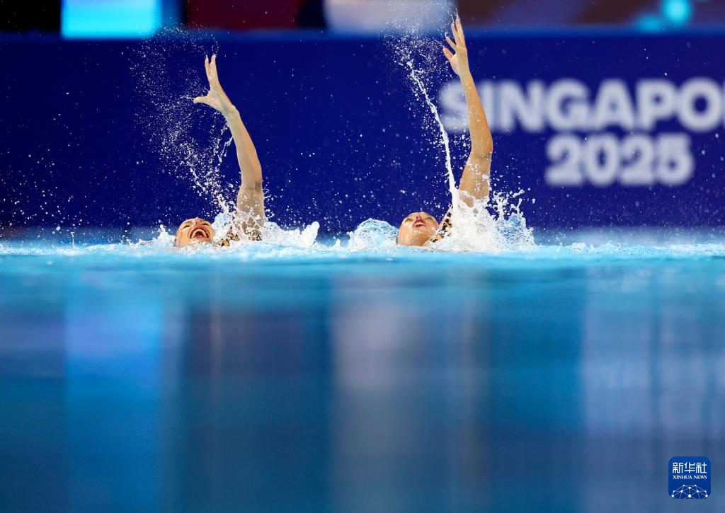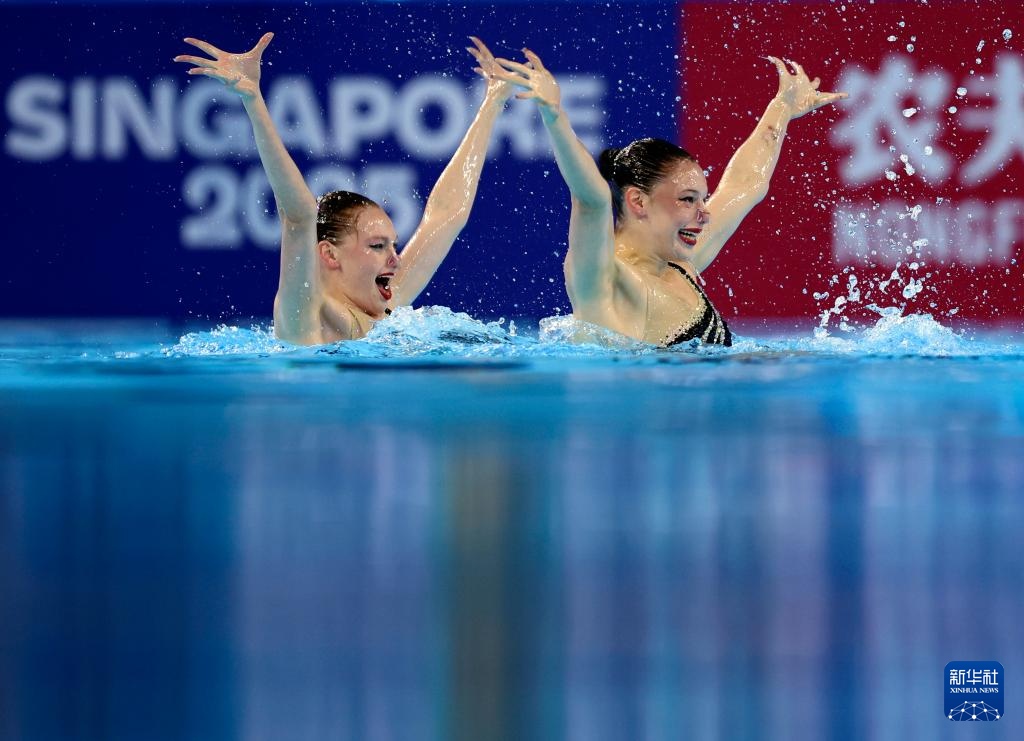 当日,2025年世界游泳锦标赛花样游泳女子双人技术自选决赛在新加坡举行。