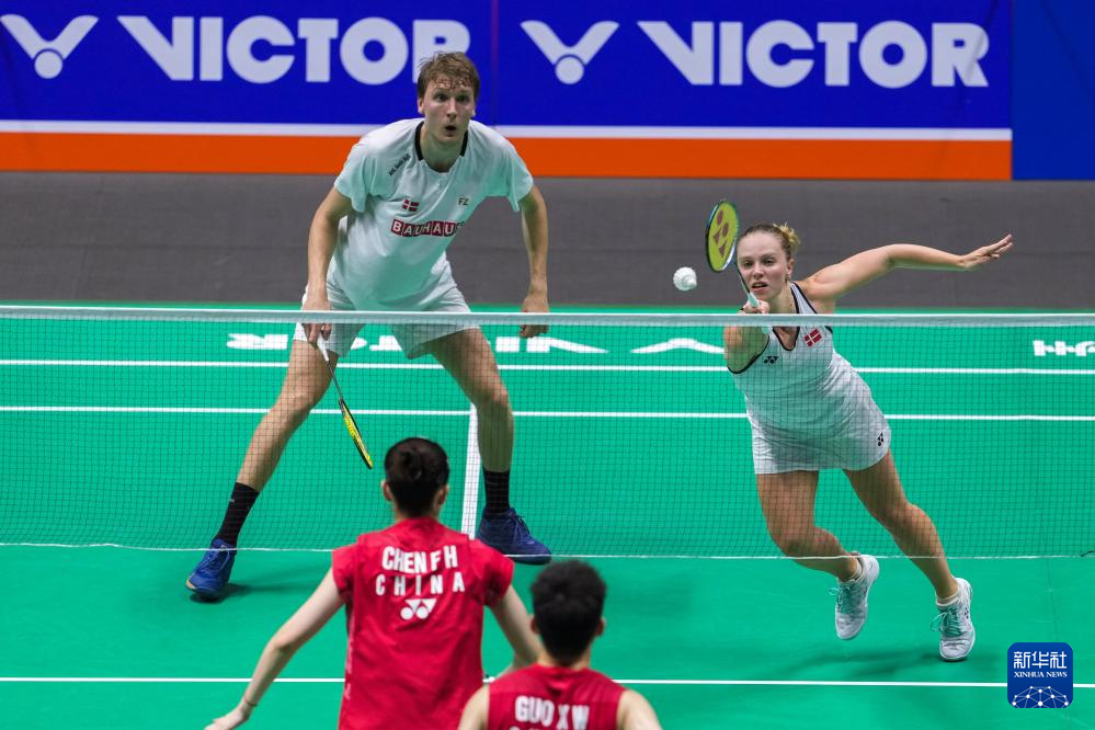 当日,在江苏常州举行的2025中国羽毛球公开赛混双首轮比赛中,中国组合郭新娃/陈芳卉2比1战胜丹麦组合杰斯帕/艾美丽,晋级下一轮。