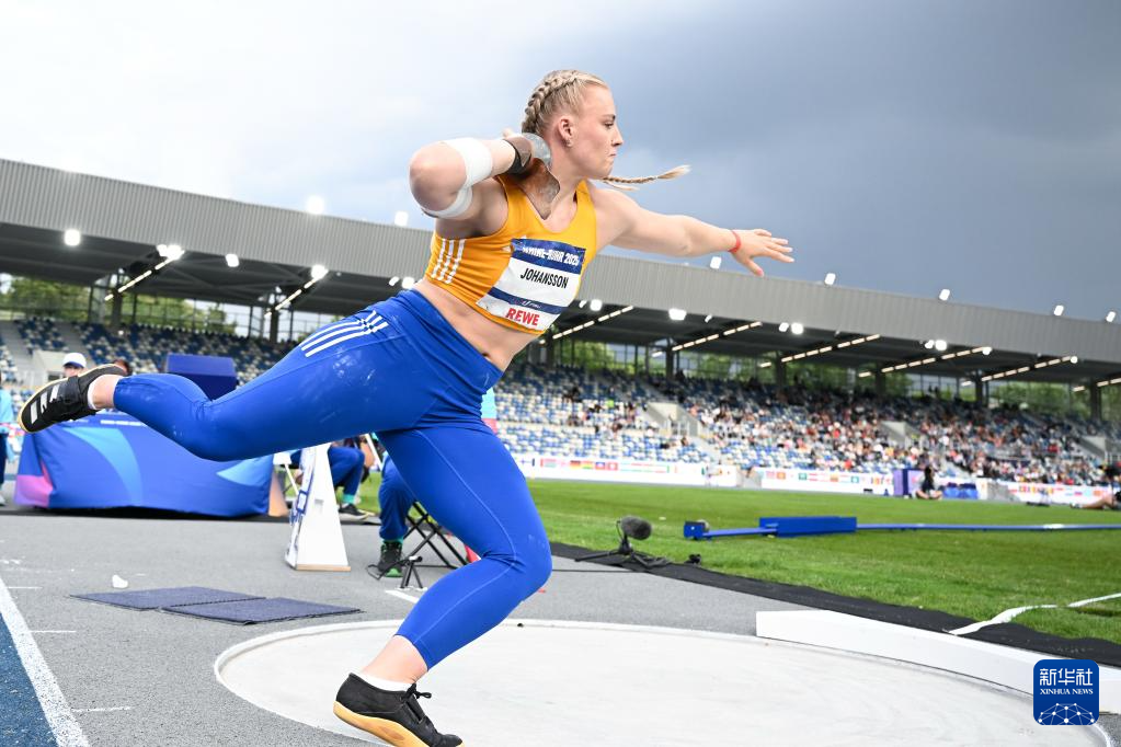 7月22日,瑞典选手约翰松在比赛中试投。最终她获得冠军。新华社记者 连漪 摄