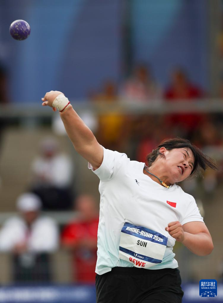 当日,2025年莱茵-鲁尔世界大学生夏季运动会田径女子铅球决赛在德国波鸿举行。