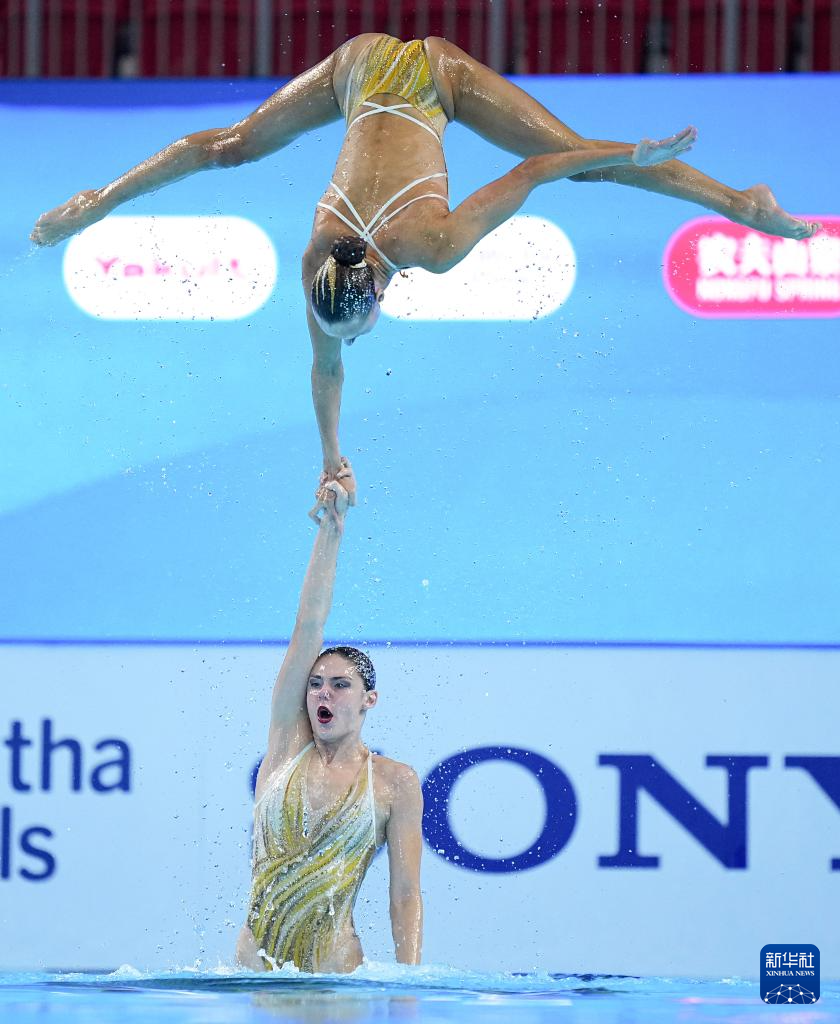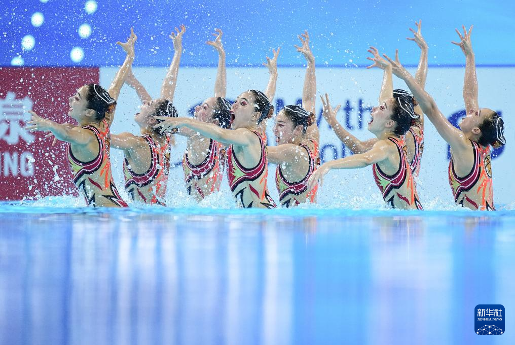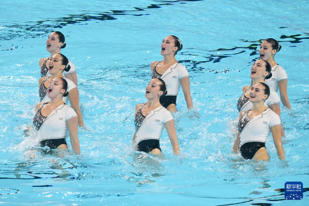 当日,2025年世界游泳锦标赛花样游泳集体技术自选决赛在新加坡举行。