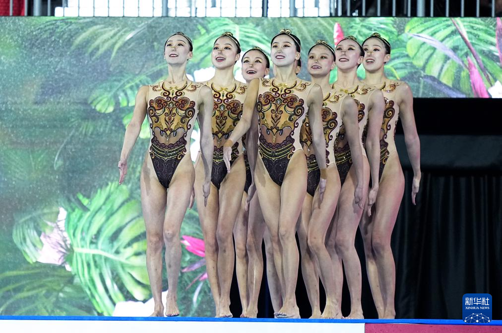 当日,在新加坡举行的2025年世界游泳锦标赛花样游泳集体技术自选决赛中,中国队夺得冠军。