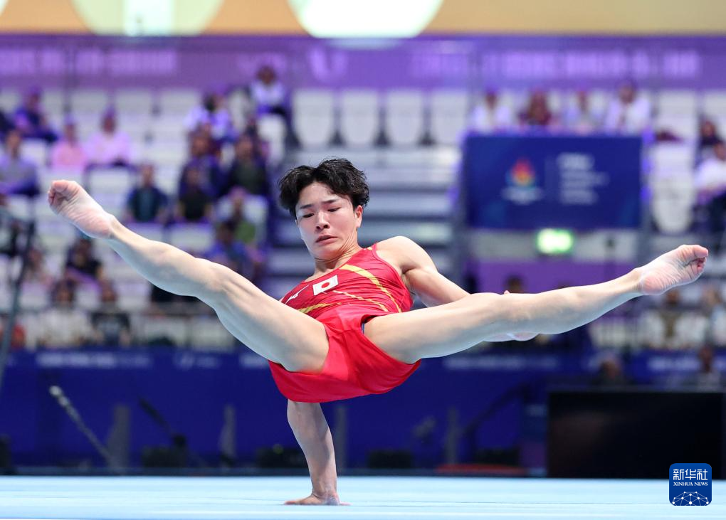 7月23日,日本队选手冈慎之助在自由体操比赛中。新华社记者 张晨 摄