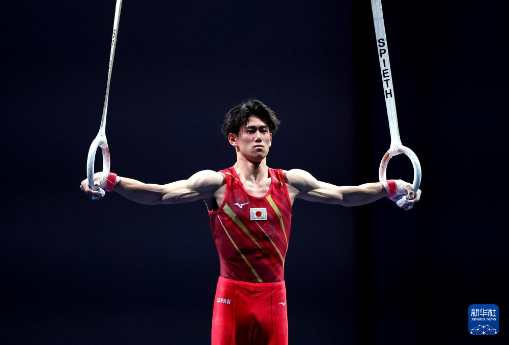 7月23日,日本队选手桥本大辉在吊环比赛中。新华社记者 张晨 摄