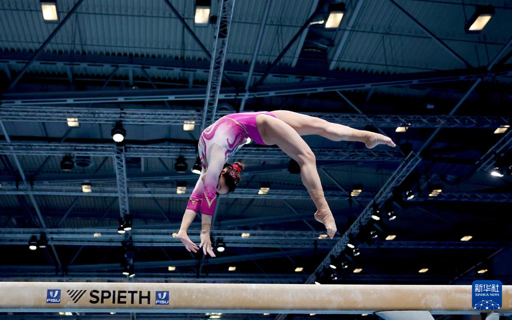 当日,2025年德国莱茵-鲁尔世界大学生夏季运动会体操女子个人全能及单项资格赛在德国埃森举行。