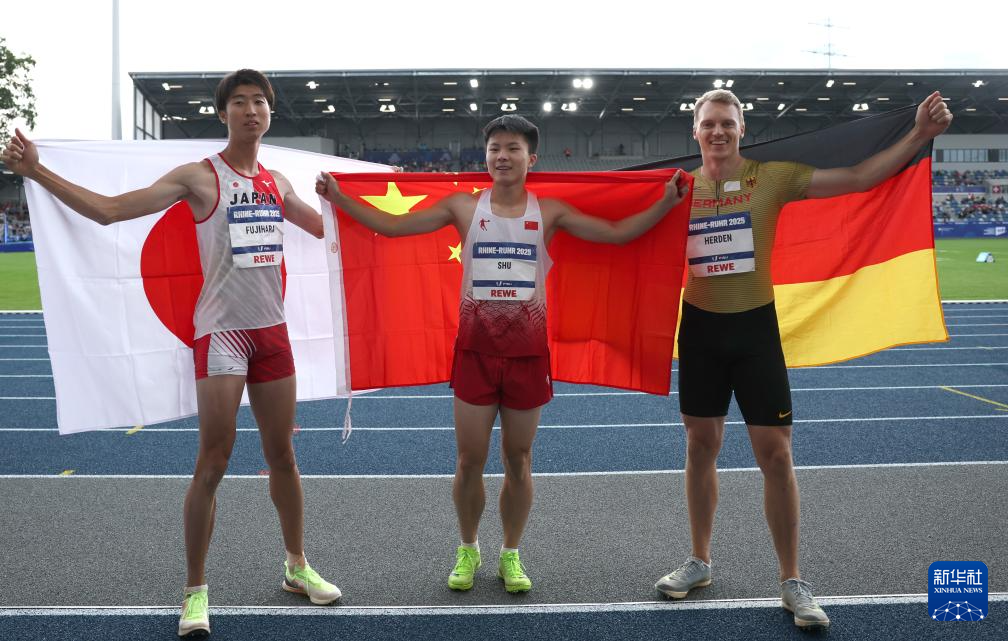 7月24日,舒衡在比赛后庆祝夺冠。新华社发(乌尔里希·胡夫纳格尔摄)