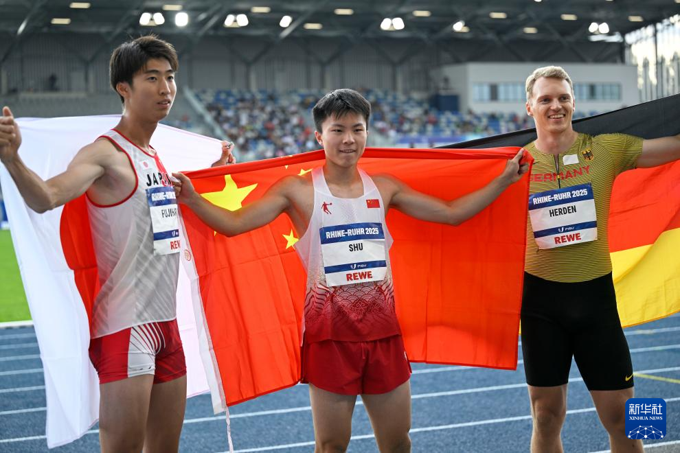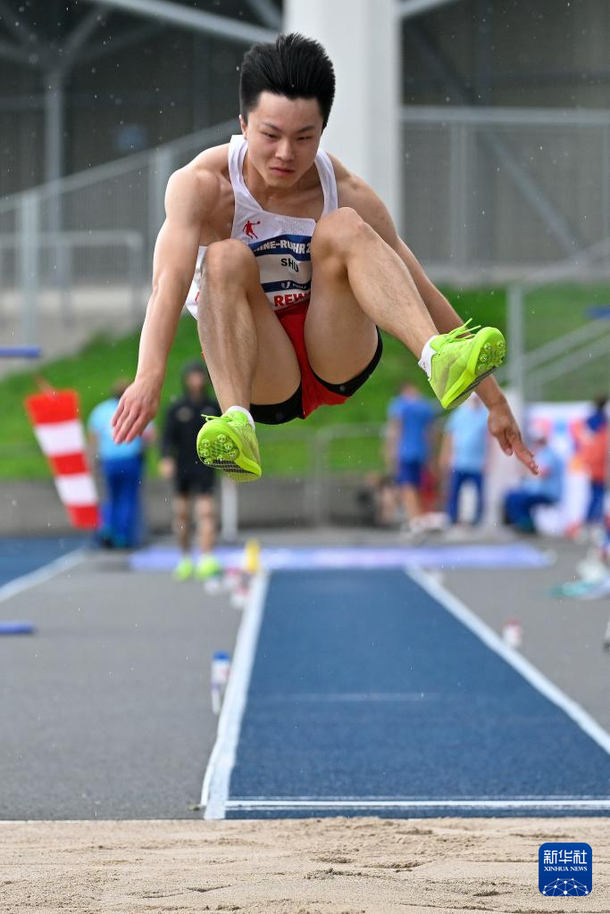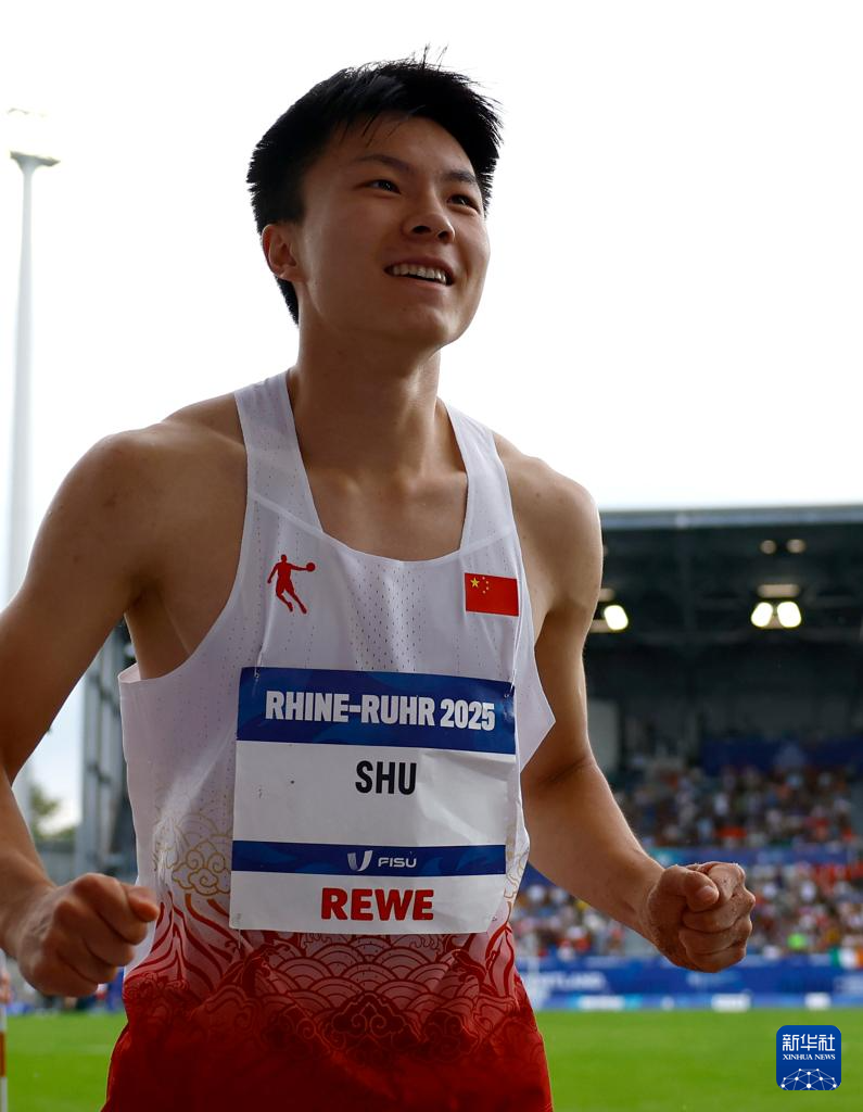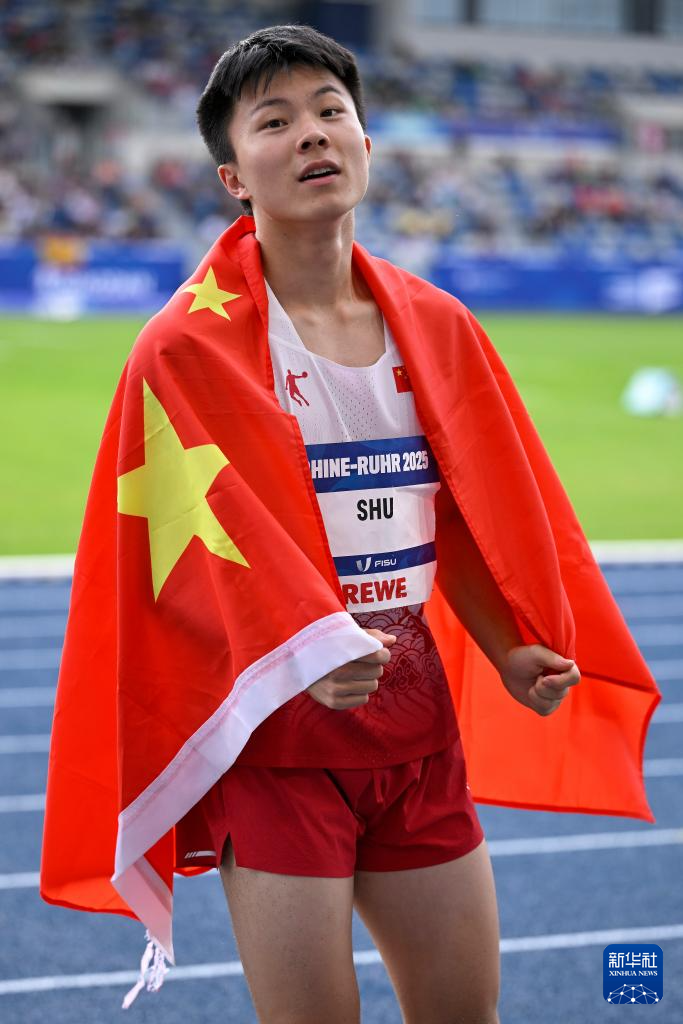 当日,在德国波鸿举行的2025年莱茵-鲁尔世界大学生夏季运动会田径男子跳远决赛中,中国选手舒衡以8米09的成绩夺得冠军。