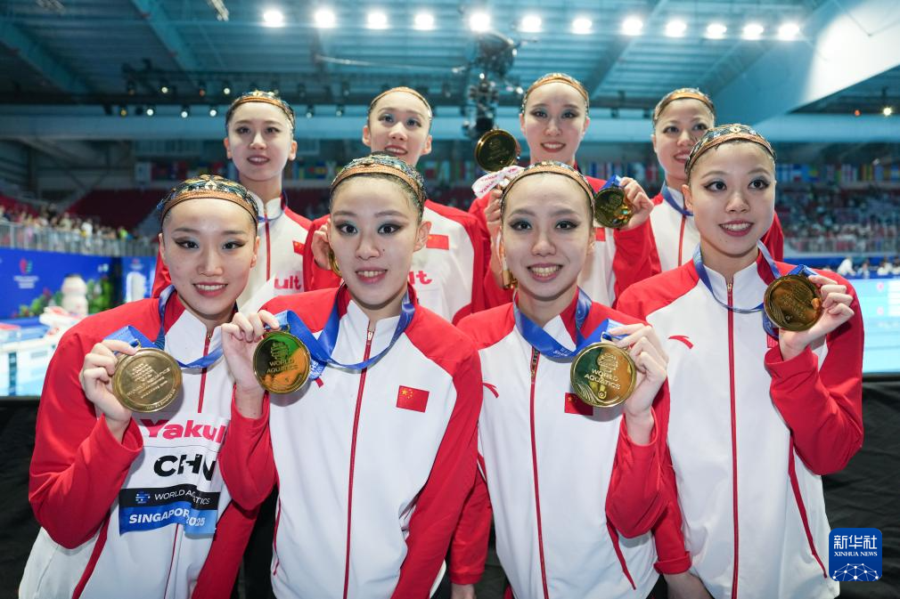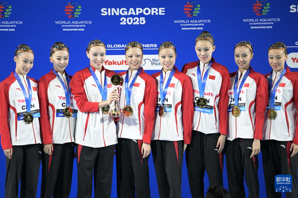 当日,在新加坡举行的2025年世界游泳锦标赛花样游泳集体技巧自选决赛中,中国队夺得冠军。