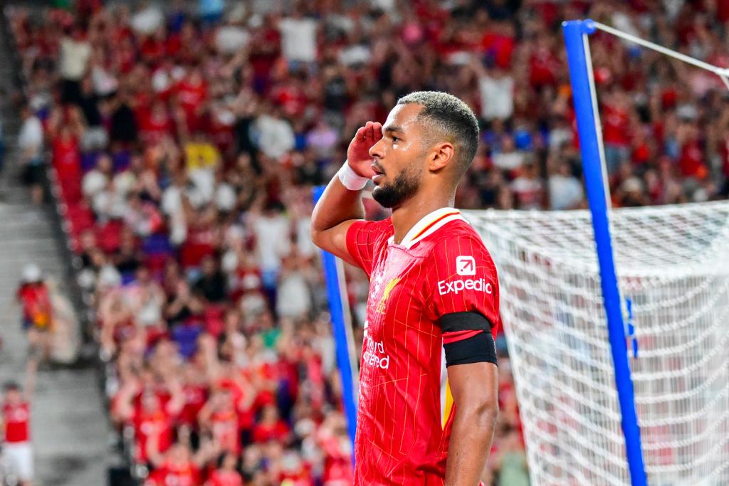 7月26日,利物浦队球员加克波在比赛中进球后庆祝。