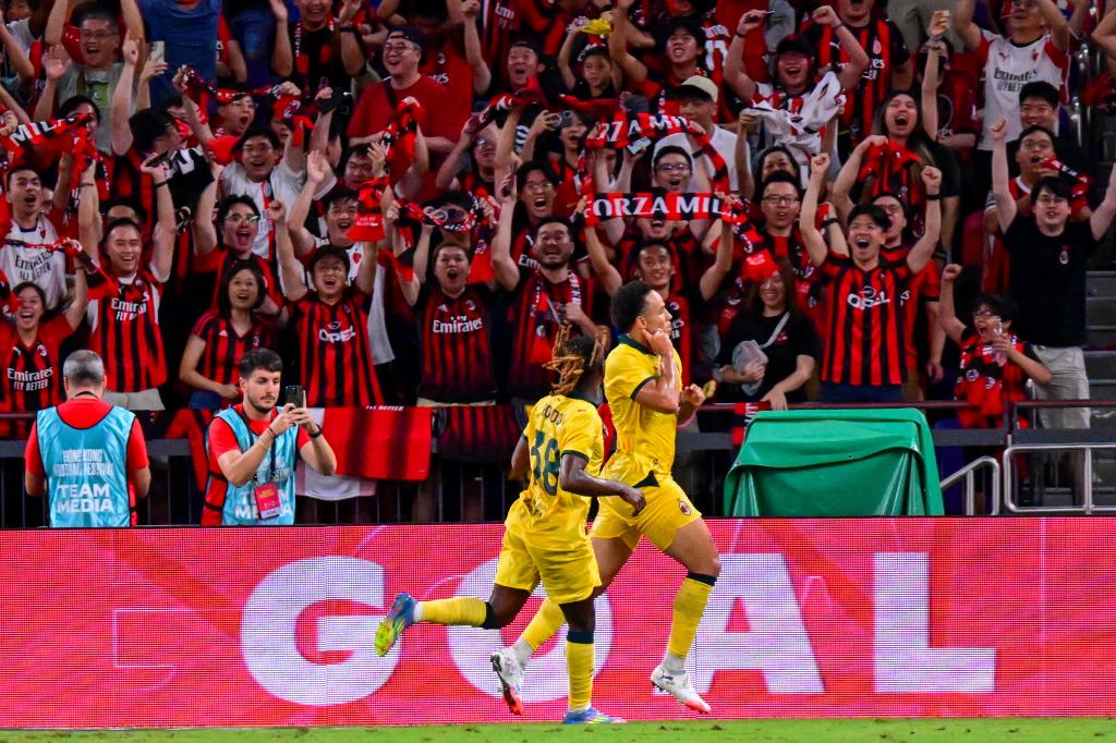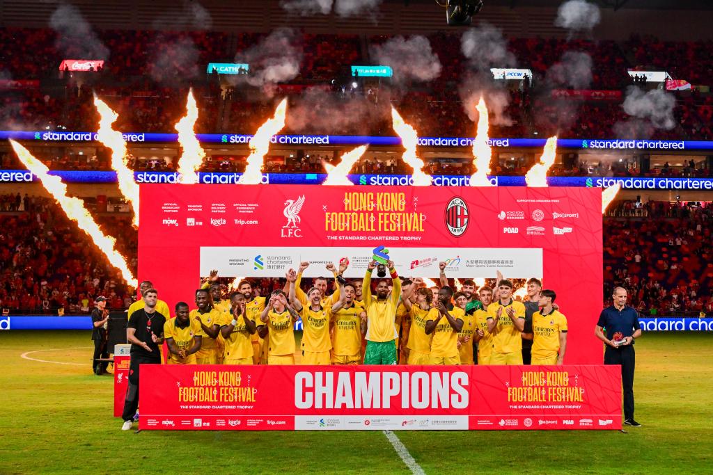 当日,在香港启德体育园举行的香港足球盛会首场比赛中,意甲AC米兰队4比2战胜英超利物浦队。