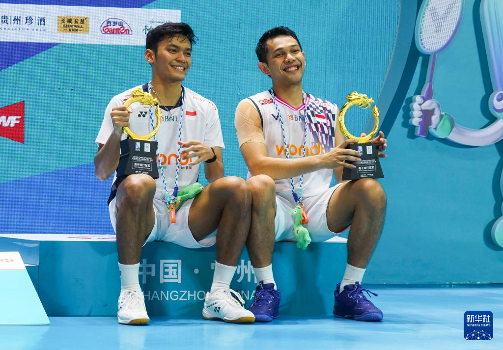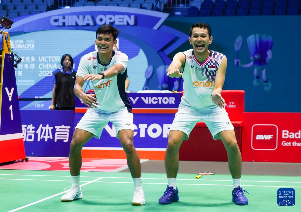 当日,在江苏常州举行的2025中国羽毛球公开赛男双决赛中,印度尼西亚组合阿尔菲安/菲克里2比0战胜马来西亚组合谢定峰/苏伟译,获得冠军。