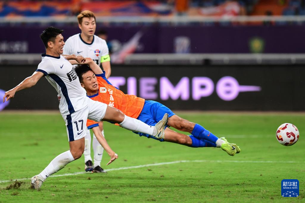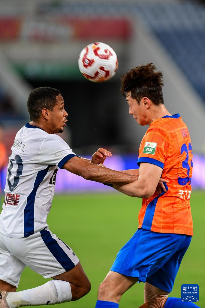 7月27日,山东泰山队球员高准翼(右)在比赛中争顶。新华社记者 朱峥 摄