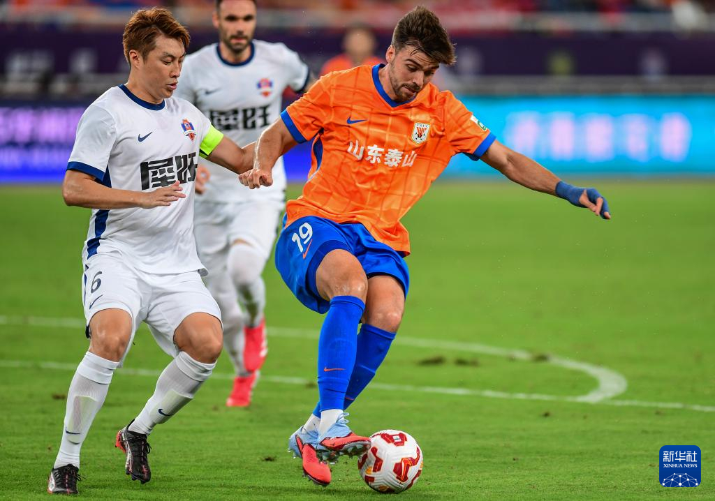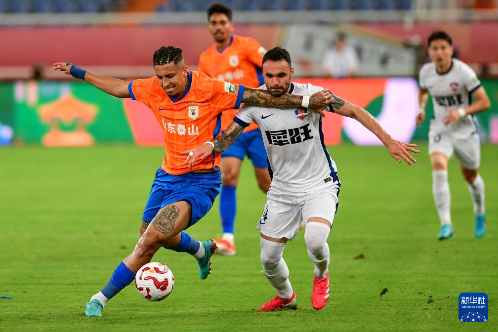 7月27日,山东泰山队球员泽卡(右)在比赛中突破。新华社记者 朱峥 摄