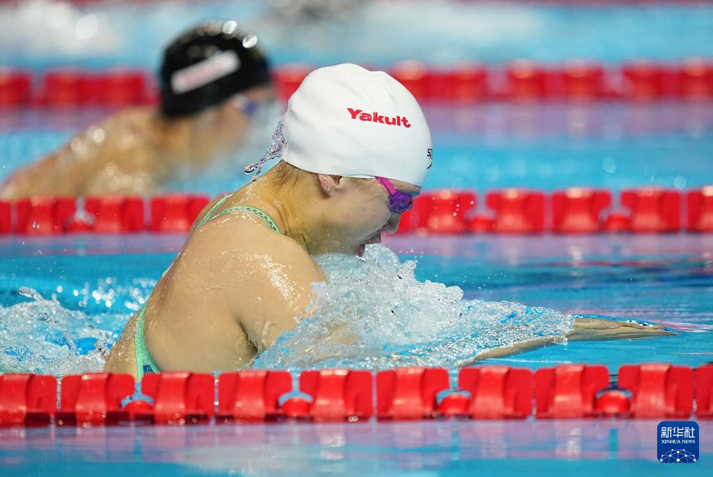 当日,2025年世界游泳锦标赛游泳女子100米蛙泳半决赛在新加坡举行。