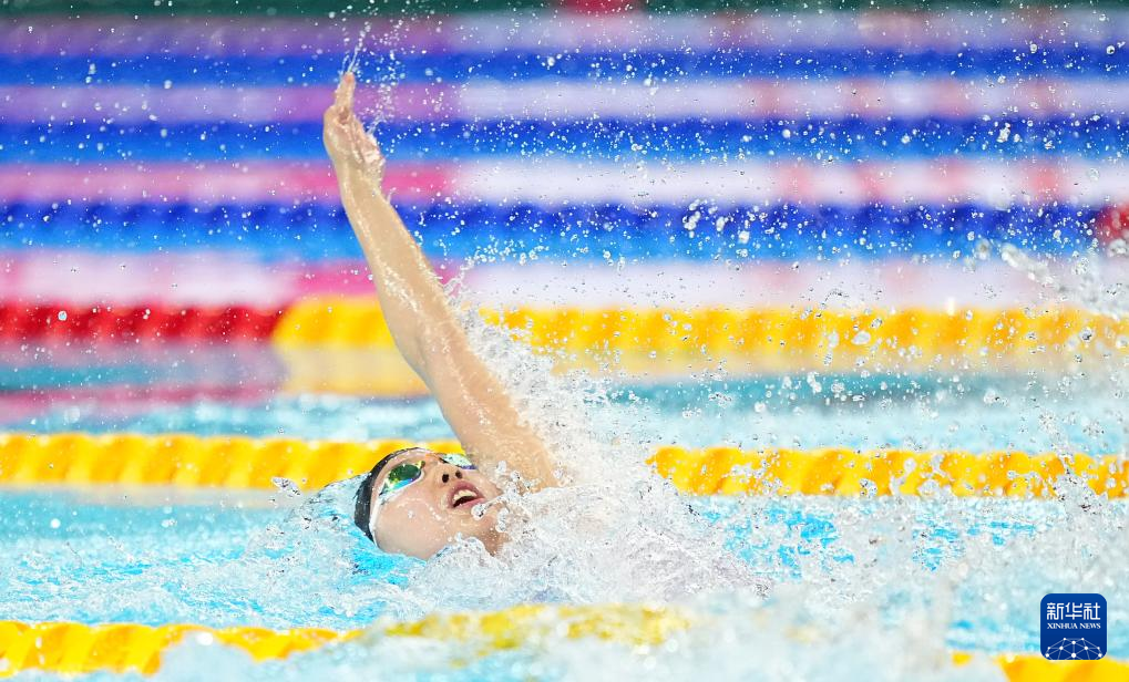 当日,2025年世界游泳锦标赛游泳女子100米仰泳半决赛在新加坡举行。