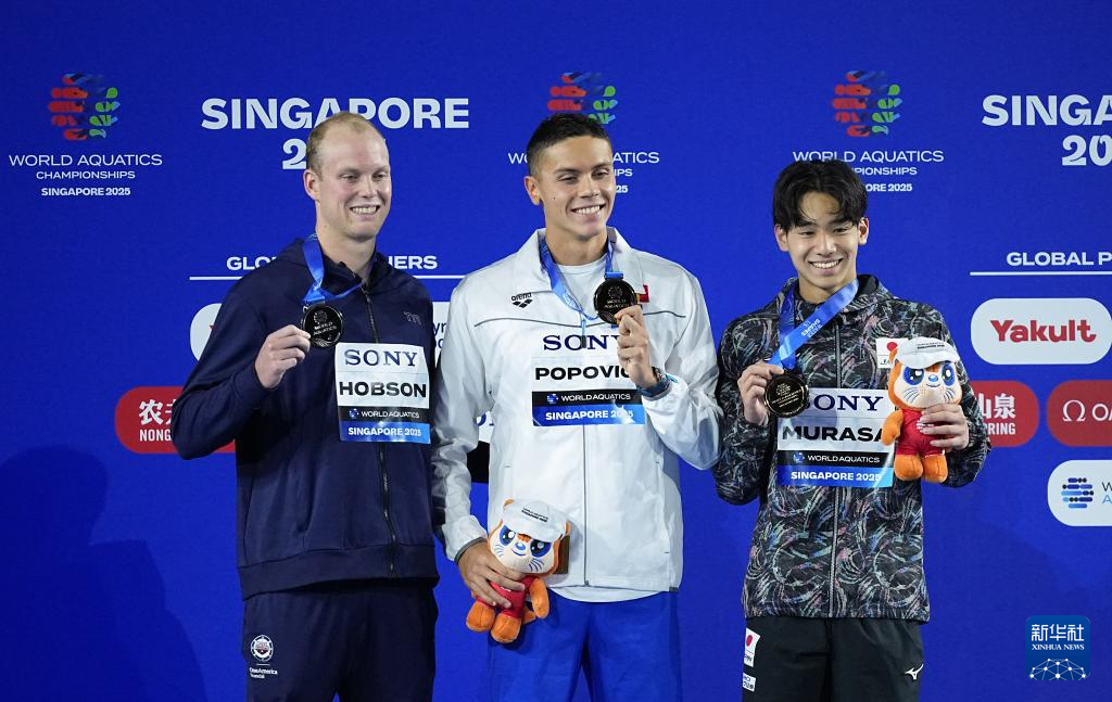 当日,2025年世界游泳锦标赛游泳男子200米自由泳决赛在新加坡举行。