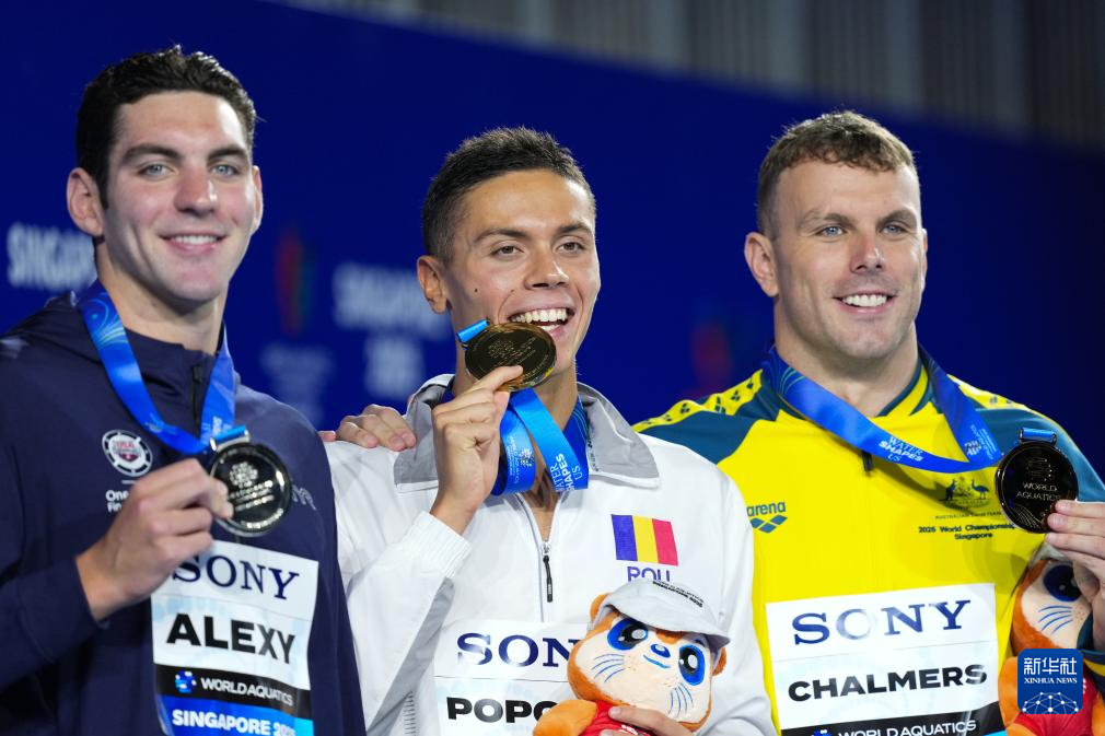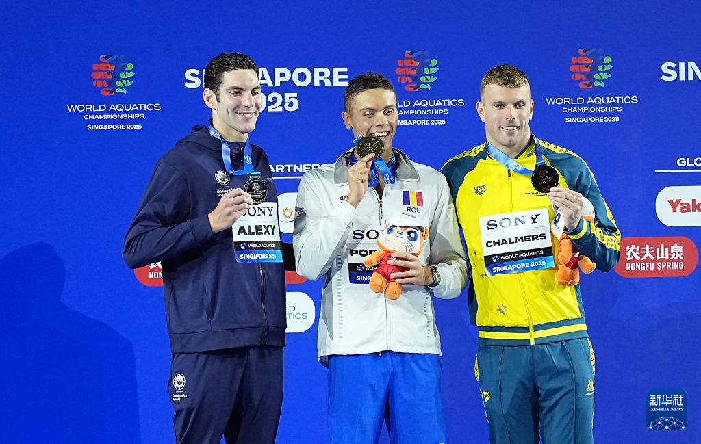 当日,2025年世界游泳锦标赛游泳男子100米自由泳决赛在新加坡举行。