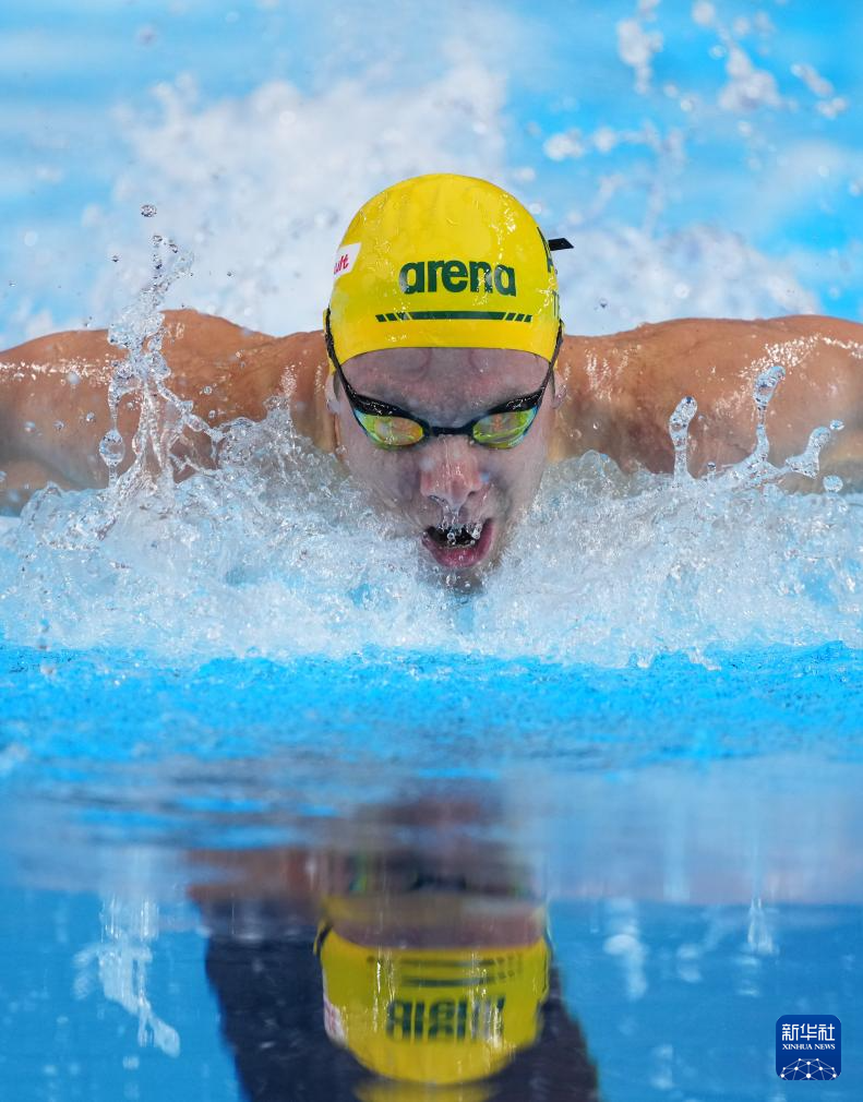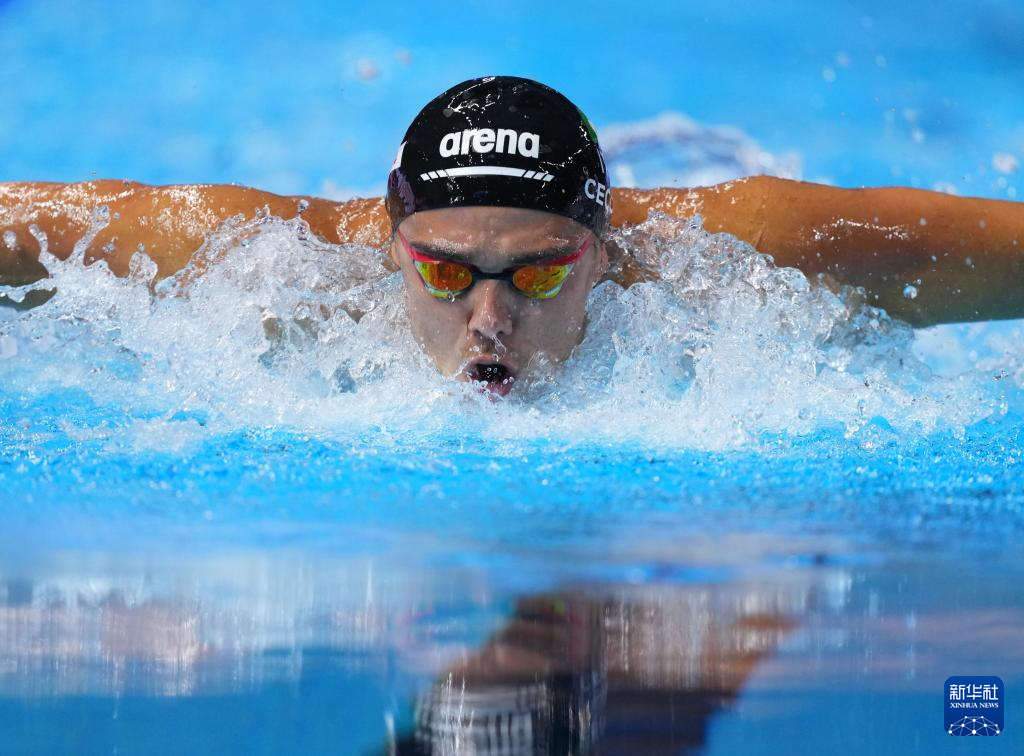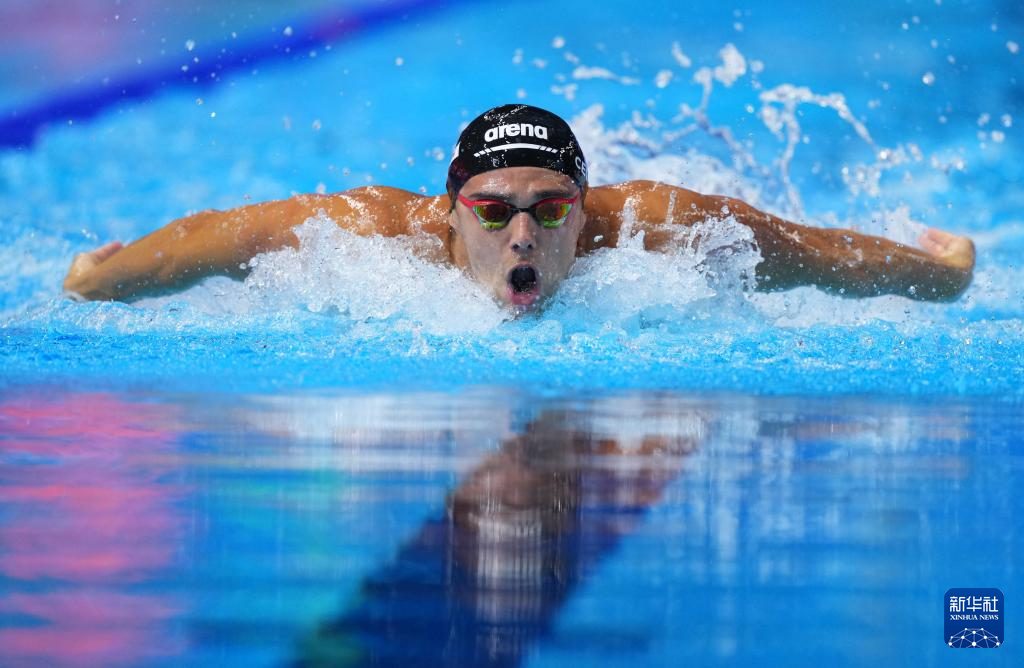 当日,2025年世界游泳锦标赛游泳男子100米蝶泳半决赛在新加坡举行。