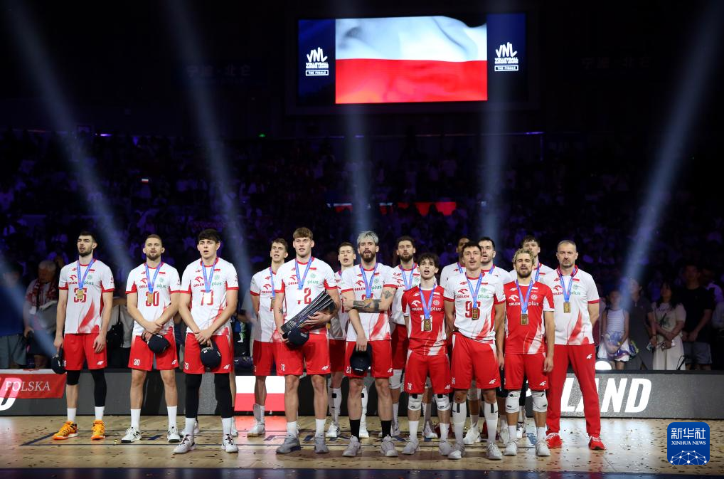 当日,在浙江省宁波市北仑区举行的2025世界排球联赛男排总决赛(中国宁波北仑)决赛冠亚军争夺赛中,波兰队3比0战胜意大利队,获得冠军。