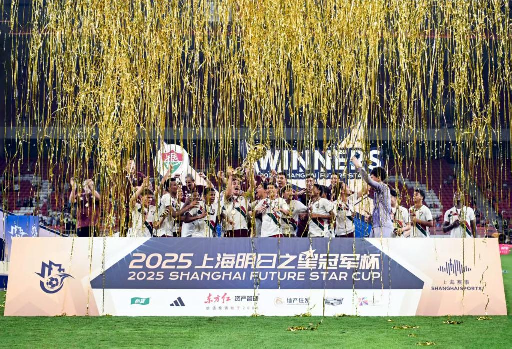 新华社上海8月4日电(许东远、李雨萌)近日,2025上海明日之星冠军杯在上汽浦东足球场落下帷幕。弗鲁米嫩塞U16梯队2:0战胜本菲卡U16梯队,捧起最终的冠军奖杯。来自世界各地的青少年来到上海,而这场赛事宛如桥梁,也连结着中外青少年的梦想与情谊。