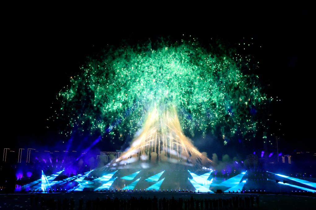 这是8月7日拍摄的开幕式上的焰火表演。新华社记者 赖向东 摄