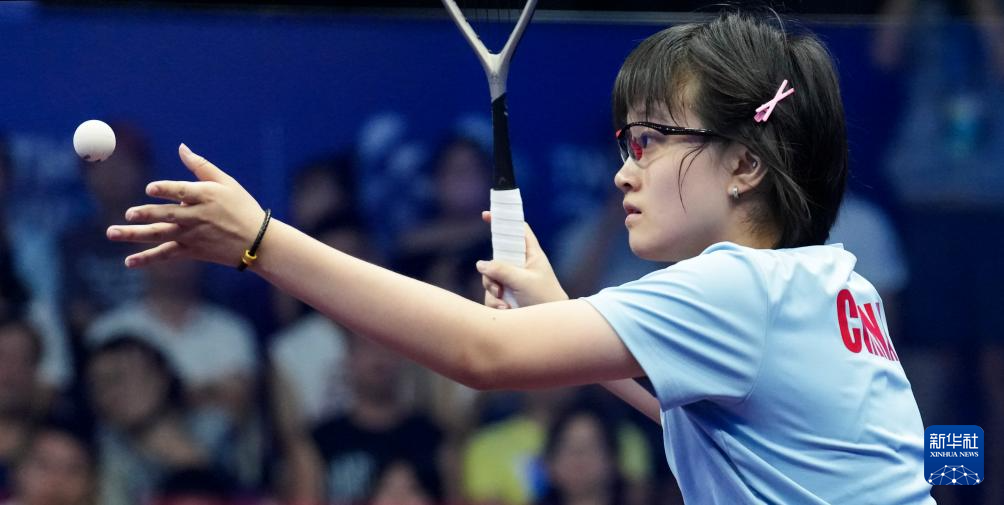 8月8日,成凌璐在比赛中发球。