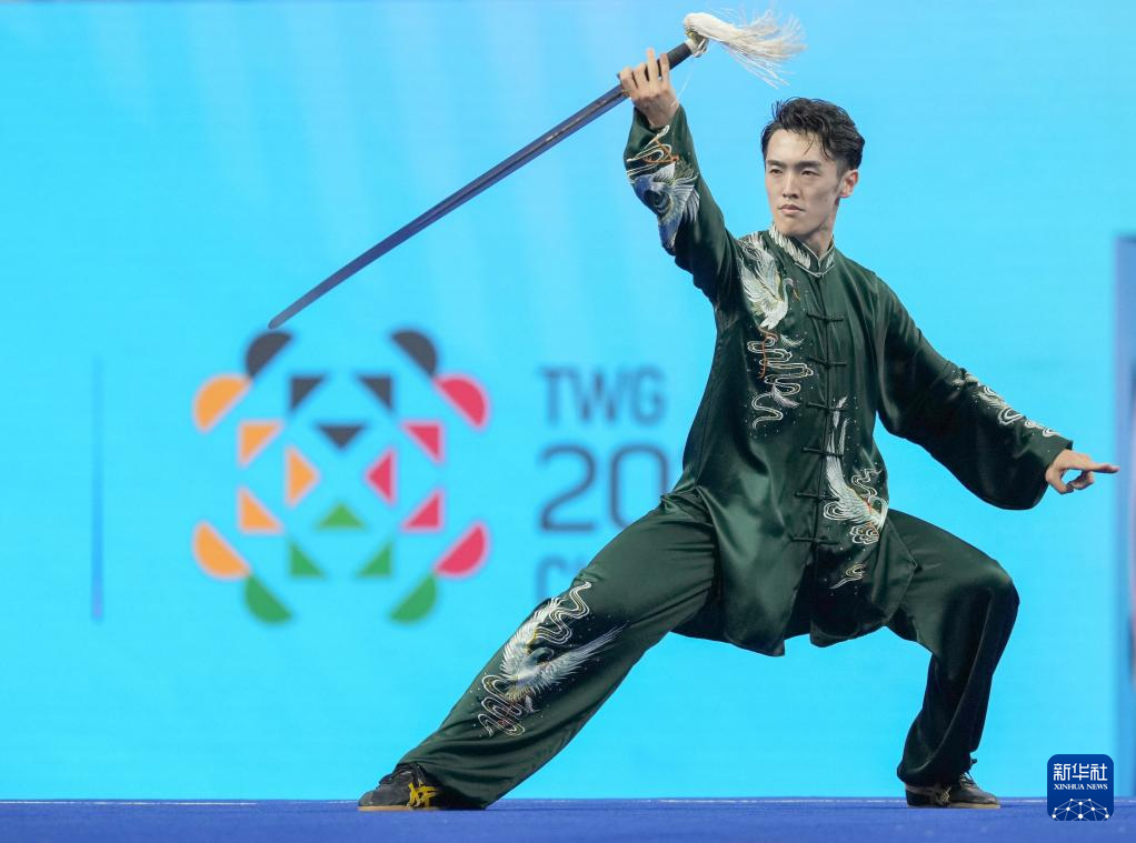 当日,2025年成都世运会男子太极拳-太极剑决赛在成都高新体育中心举行。