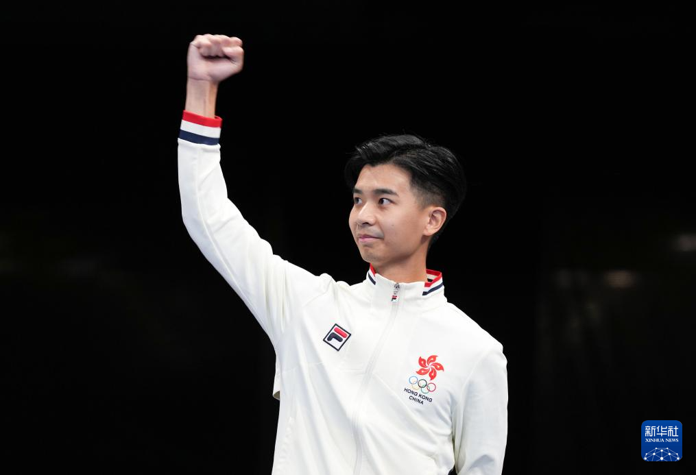 8月9日,中国香港选手杨颂熹在颁奖仪式上。最终,他获得冠军。