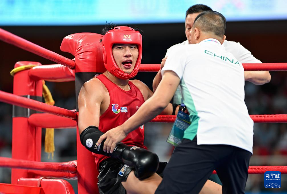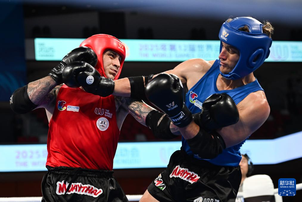 当日,2025年成都世运会泰拳男子86公斤级半决赛举行。