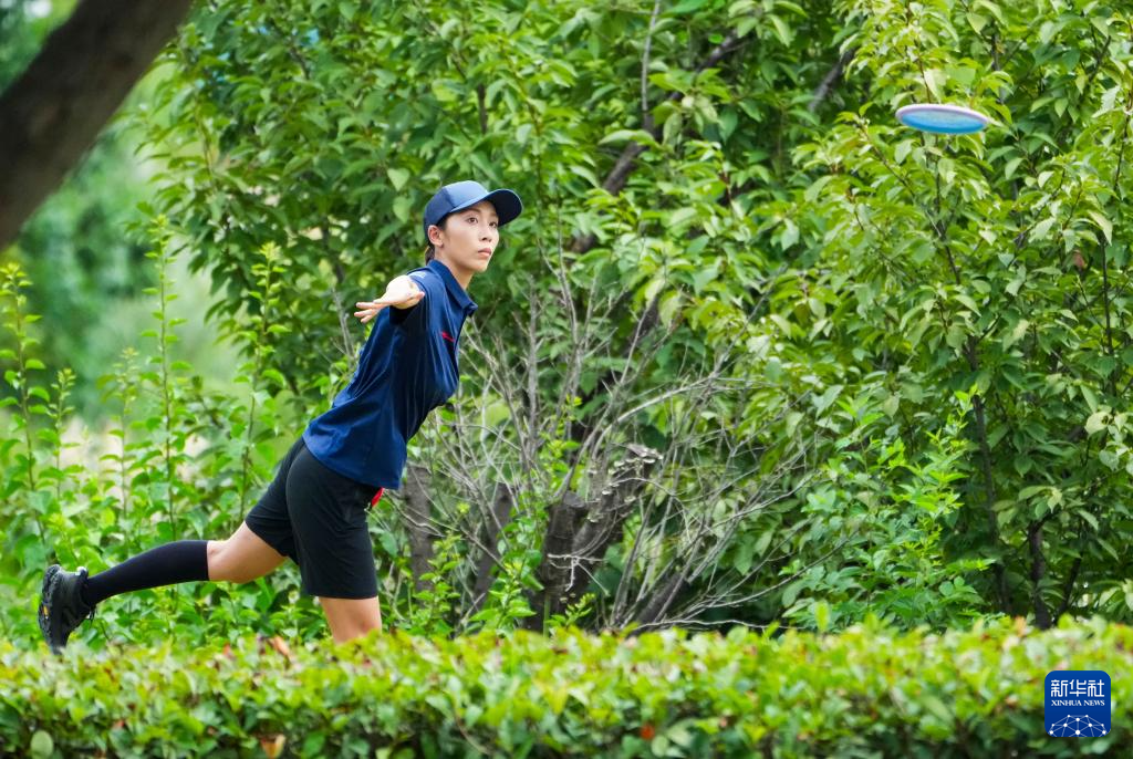 8月8日,中国选手马彦文在比赛中掷飞盘。