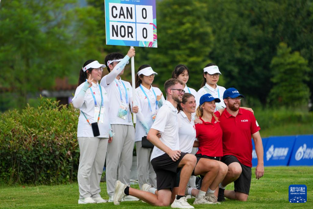 8月8日,加拿大选手和挪威选手在赛后合影。