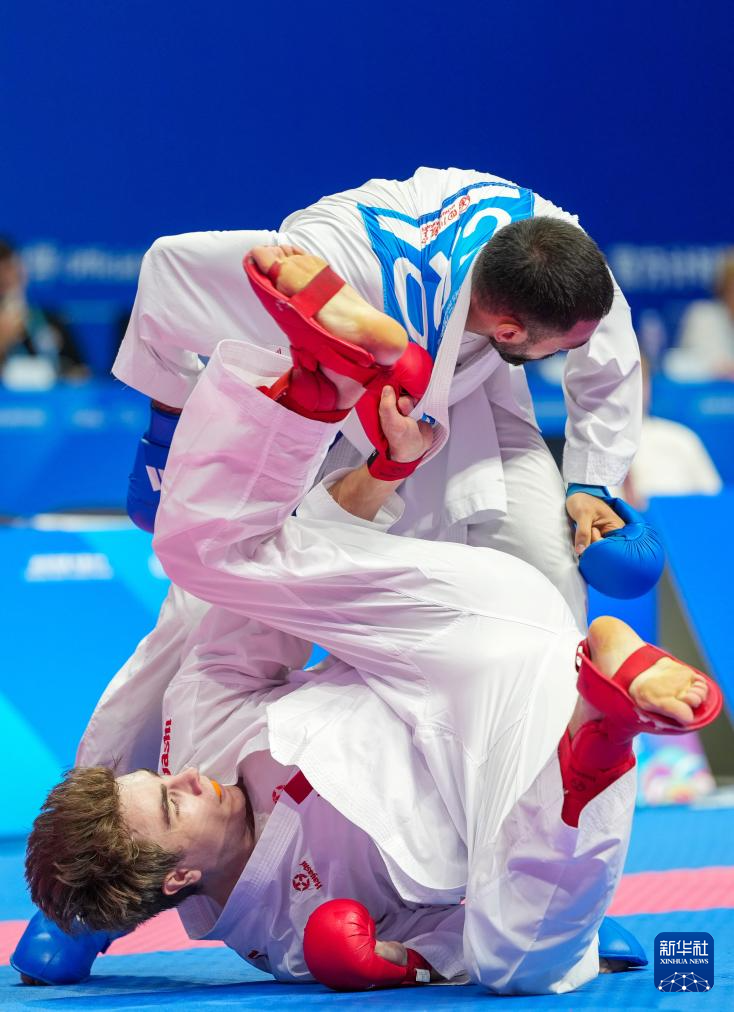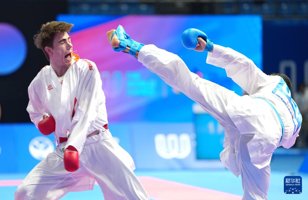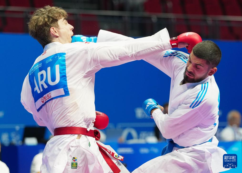 当日,2025年成都世运会空手道男子组手84公斤以上级小组赛举行。