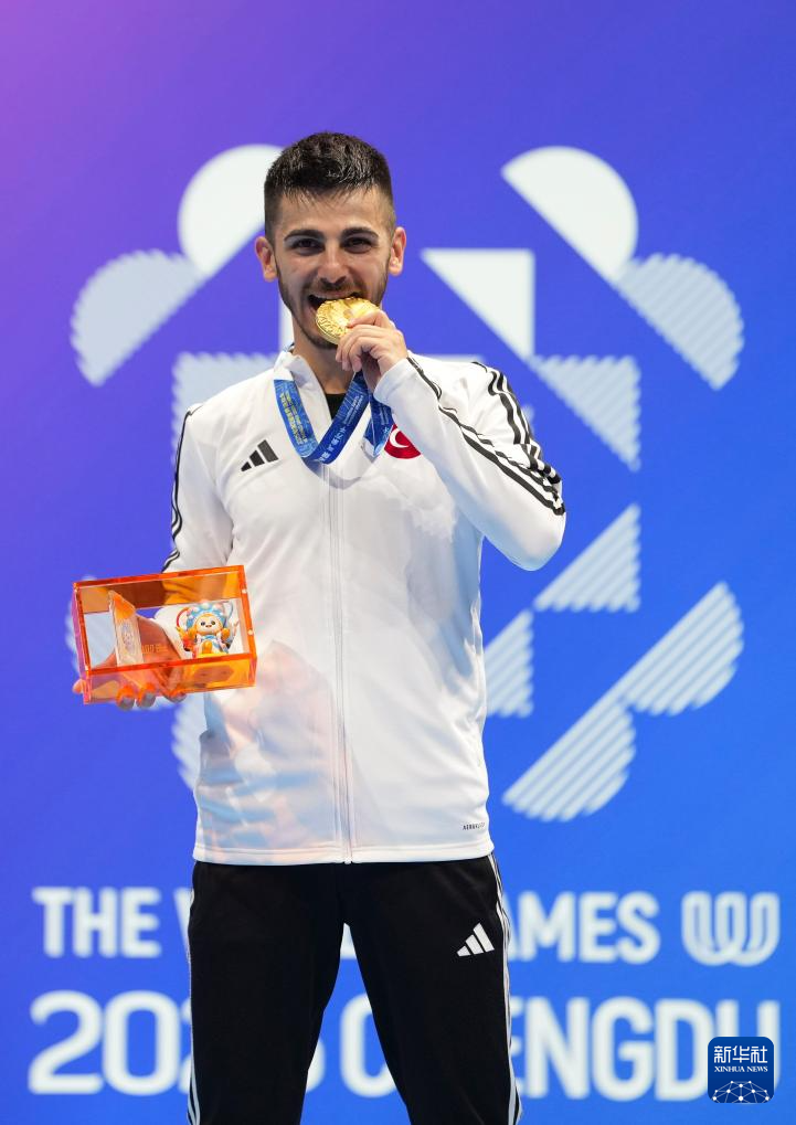 8月8日,冠军土耳其选手桑丹在颁奖仪式上。
